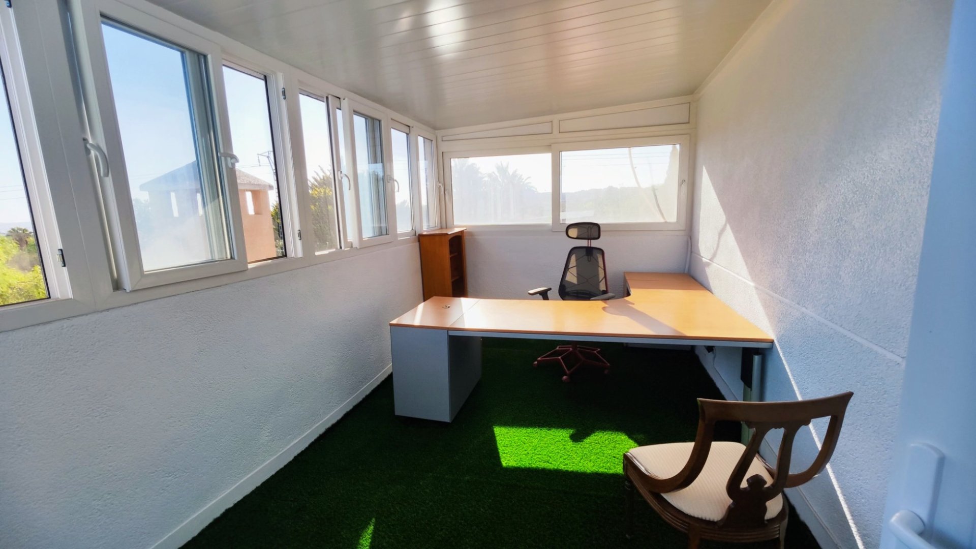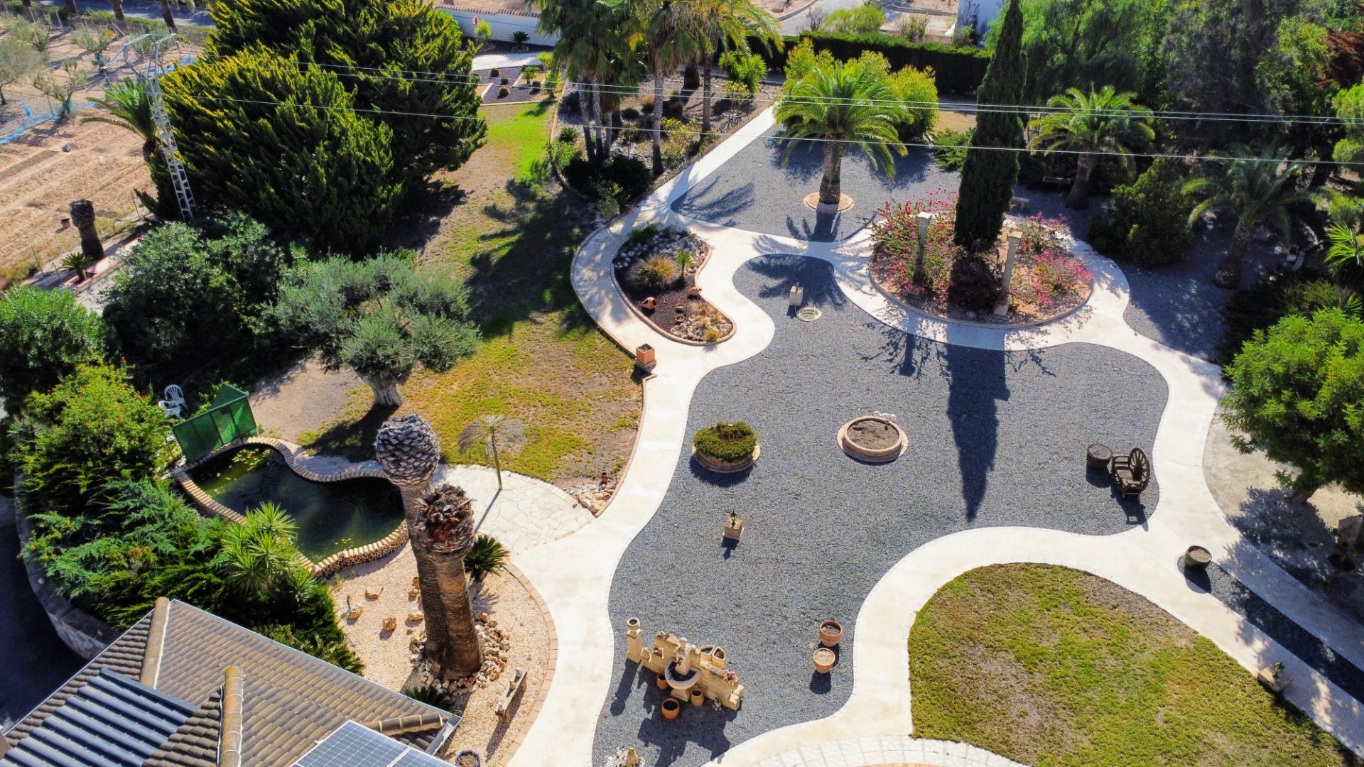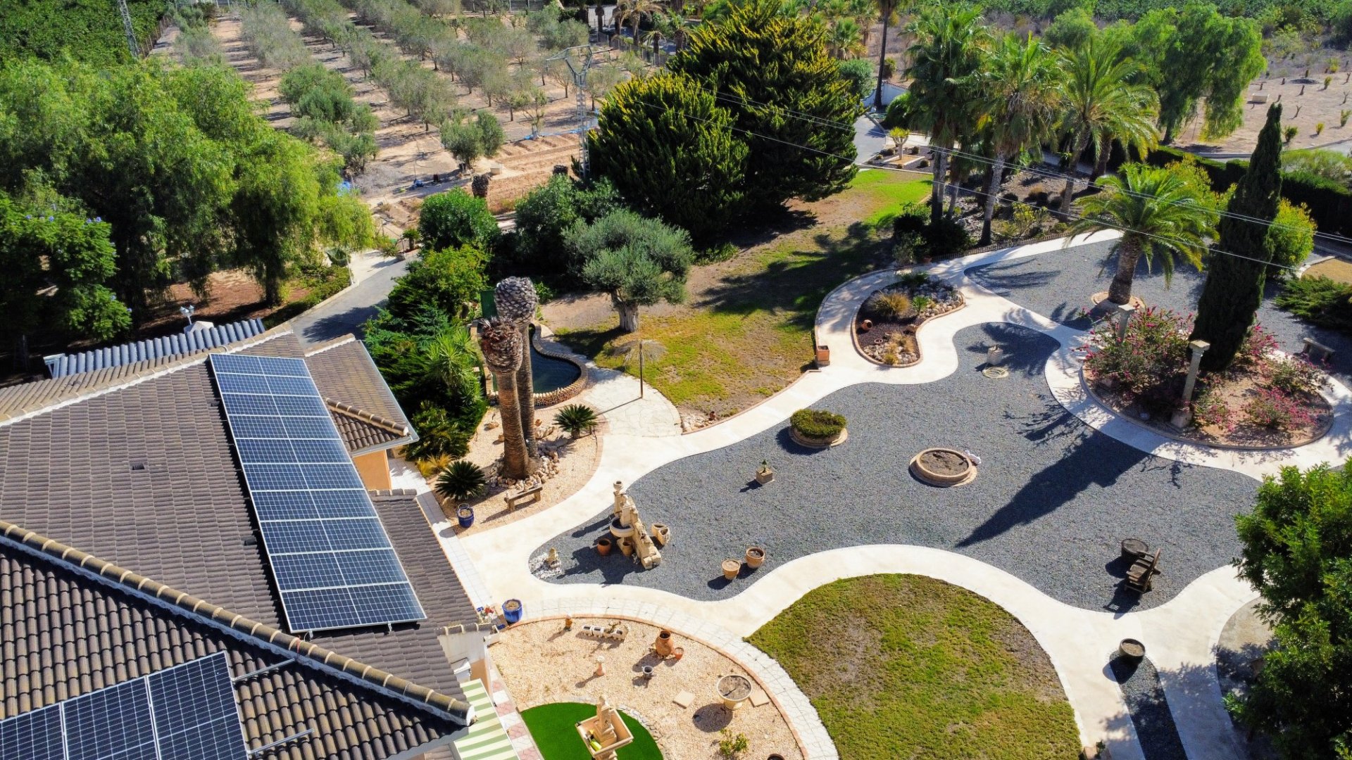 Nestled just under a kilometer from the charming town of San Miguel de Salinas, Finca Los Chelines offers a unique blend of natural beauty, privacy, and convenience. This stunning estate is surrounded by lush lemon groves and picturesque pine-covered hills, on almost 13,000 m² of land. It provides a peaceful sanctuary but is only a short drive from essential amenities. The estate’s irrigation system, managed by a computerized system, ensures the perfect maintenance of its 4,000 m² of olive trees, lawn areas, and hedges. These fully grown olive trees produce an impressive harvest of 3,000 kilos annually, ideal for local sale or personal olive oil production. With 50 palm trees and vibrant Mediterranean vegetation, the property offers stunning views and a serene atmosphere. A large 13 x 6m swimming pool is the centerpiece of the outdoor space, hidden behind walled terraces, providing both privacy and beauty. This property also boasts a triple garage, central heating, air conditioning, and a top-of-the-line security system, making it not only beautiful but also highly functional. The main house, built in 1990, was designed with structural integrity and comfort in mind, offering five spacious bedrooms and five bathrooms. The master bedroom suite is especially luxurious, featuring a modern en-suite bathroom and a fully fitted dressing room. The house also includes a 40m² billiard room, spacious living areas, and a beautifully open-plan kitchen that offers a perfect blend of comfort and entertainment space. Just minutes from the beaches of Orihuela Costa, shops, and golf courses, Finca Los Chelines is a dream home for anyone looking for tranquility with all the conveniences close by. Welcome to Nuestra empresa and the healthiest country in the world!