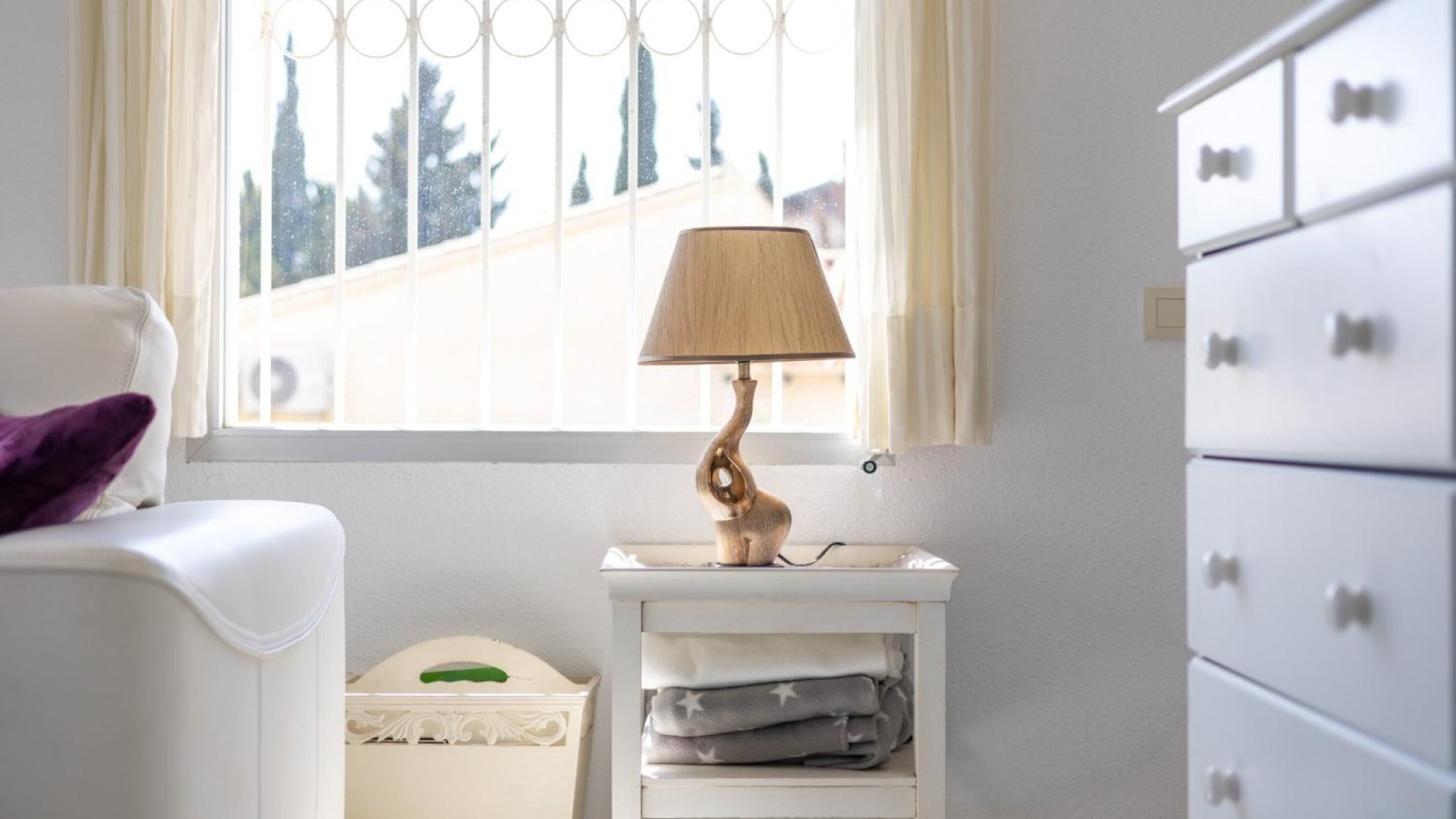 Pleasant and bright property with a wonderful garden and a great location! This inviting villa of 176 sqm is located in a quiet and well-established residential area in Alfaz del Pi. Close to all necessary amenities, such as supermarkets, restaurants, public transport and sport facilities; and within walking distance to the center of Alfaz del Pi. It has a privileged location as it is only a 15 minute drive from the sandy beaches of Benidorm and 10 minutes from the lovely beach in Albir. Alicante airport is 40 minutes away by car. The property has everything on one level! The practical distribution consists of a lovely living-room with dining area and access to the beautiful pool area; a practical kitchen with views and laundry room; 4 good bedrooms and 2 modern bathrooms. On the lower floor there is a large garage with a new automatic gate and cylinders for the main gate from the road installed in 2020. The wonderful villa sits on an ample plot of 945 sqm. Here one can enjoy a pleasant pool area with an enticing swimming pool with new heat pump and cover (2018); various open- and covered terrace areas; a fun play area for children and a covered parking space. The beautifully landscaped garden was completely renovated in 2015 and has continuously been maintained. The villa was completely renovated in 2010 and is well maintained, including one new air conditioning unit (2020). A lovely property with a pleasant and privileged location!