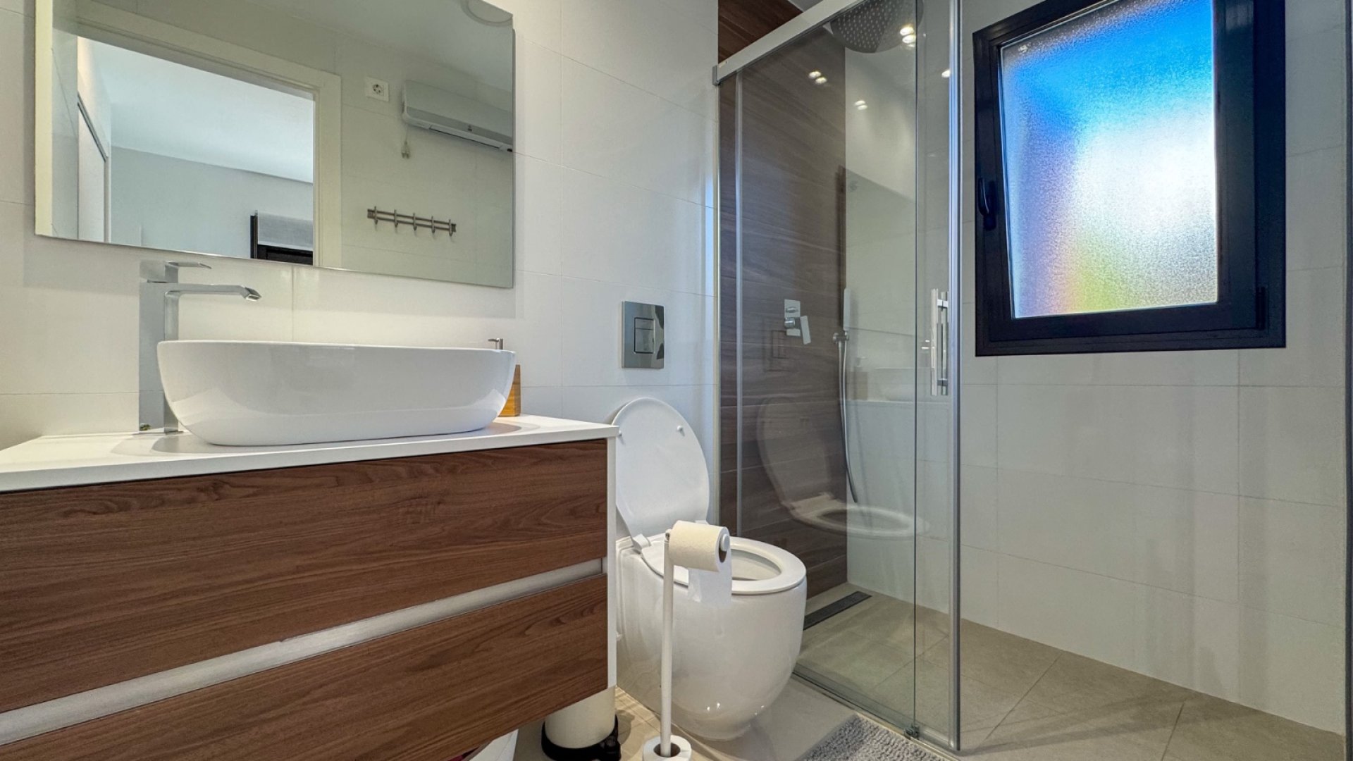 Modern home in La Finca, Algorfa – Fully equipped and ready to move in Magnificent property for sale in the exclusive La Finca urbanisation, Algorfa, built in 2021 with a modern and functional design. Featuring 2 bedrooms and 2 bathrooms with showers, one of them en suite, this home stands out for its brightness throughout the day, thanks to its orientation and large windows. The property is sold fully furnished and equipped, ready to enjoy from day one. It has two terraces, perfect for enjoying the sun in the morning and afternoon, creating ideal spaces for relaxation or outdoor gatherings. In addition, it is equipped with 4 outdoor security cameras with alarm system, ensuring peace of mind and safety at all times. Located within a private residential area with monthly maintenance, the property includes internal parking and offers a spectacular pool area, perfect for relaxing and enjoying the Mediterranean climate. If you are looking for a modern, bright home with all the comforts in one of the best areas of the Costa Blanca, this is your opportunity!