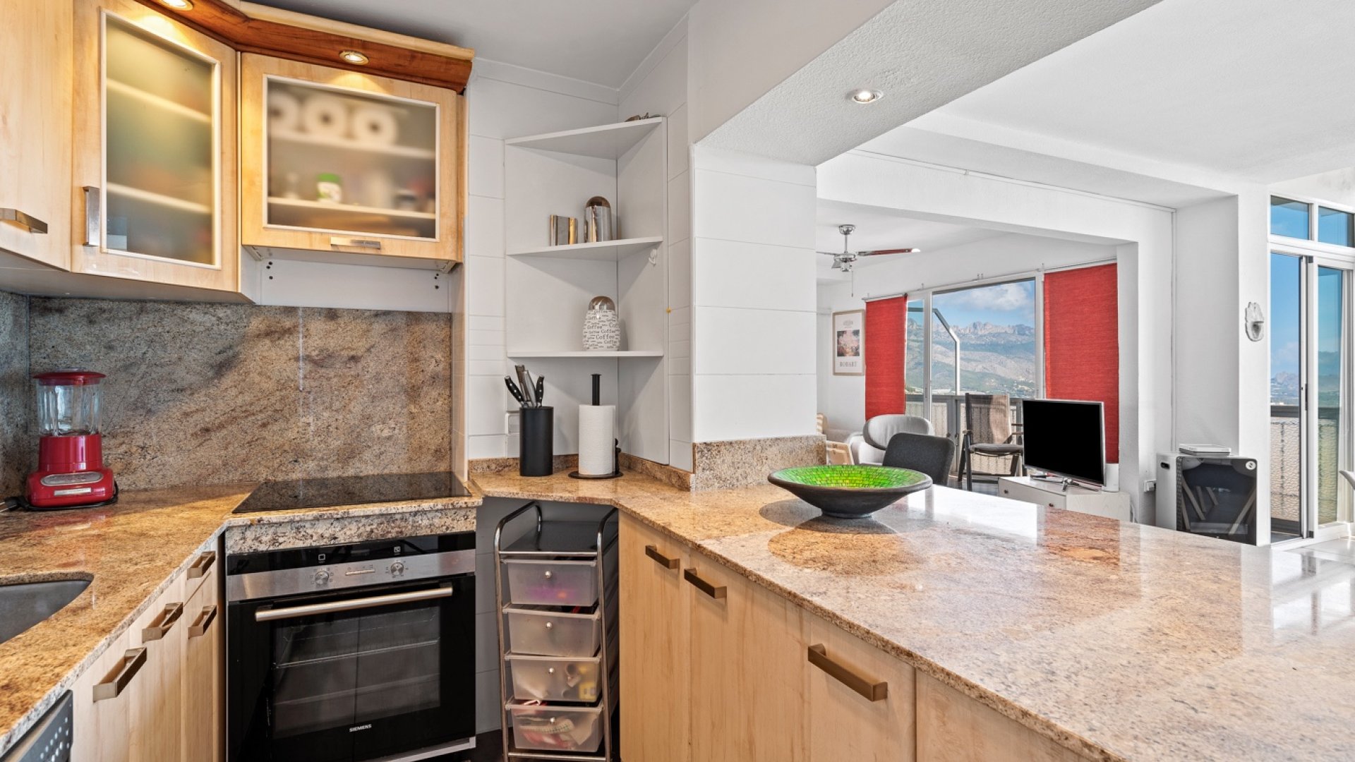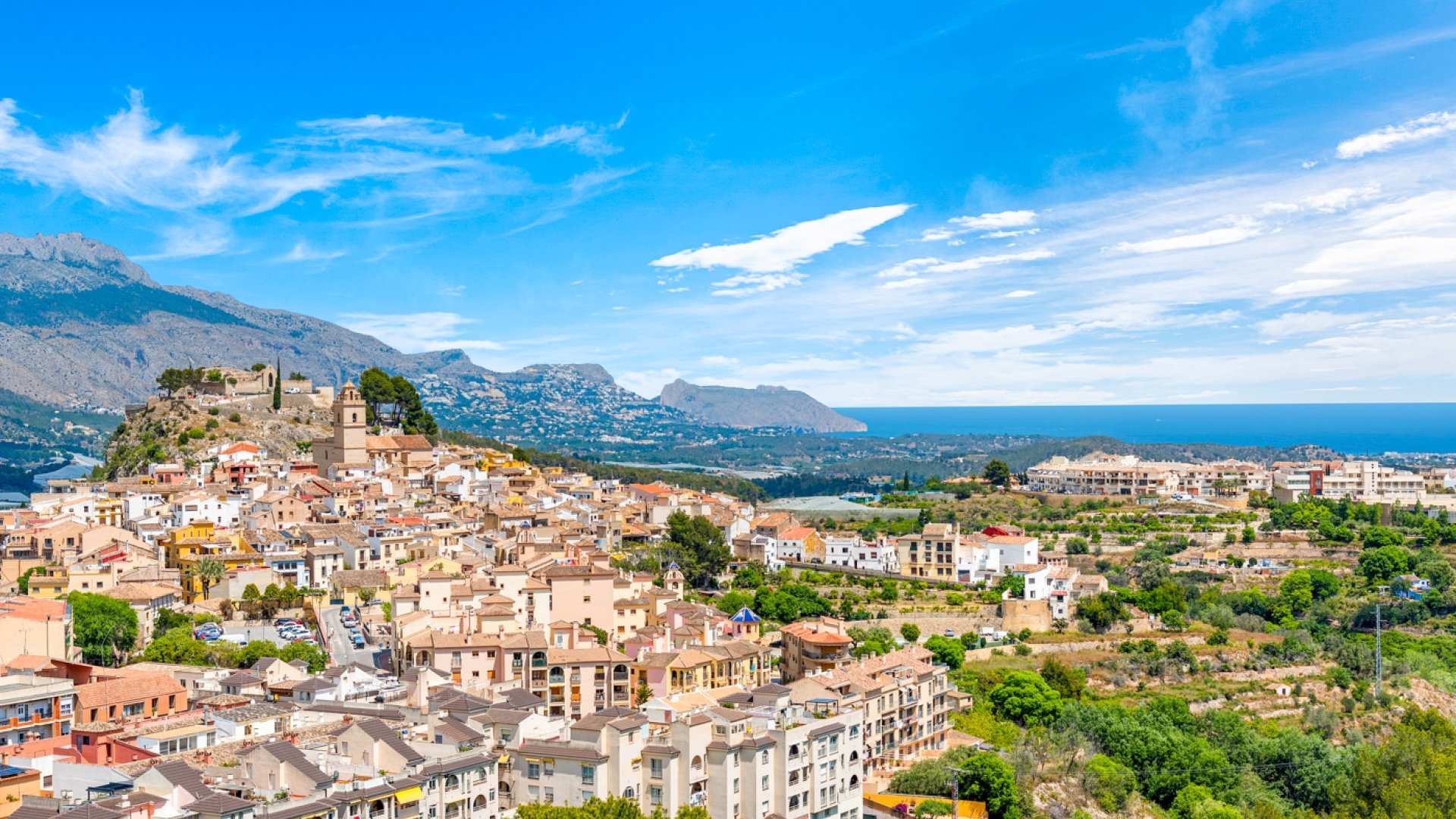 Enjoy stunning panoramic views of the mountains, Polop village, and the Mediterranean Sea from this bright 5th-floor apartment. Perfectly located for those who love nature, peace, and authentic Spanish surroundings – yet only a short walk to restaurants (Michelin), cafés, and supermarket.