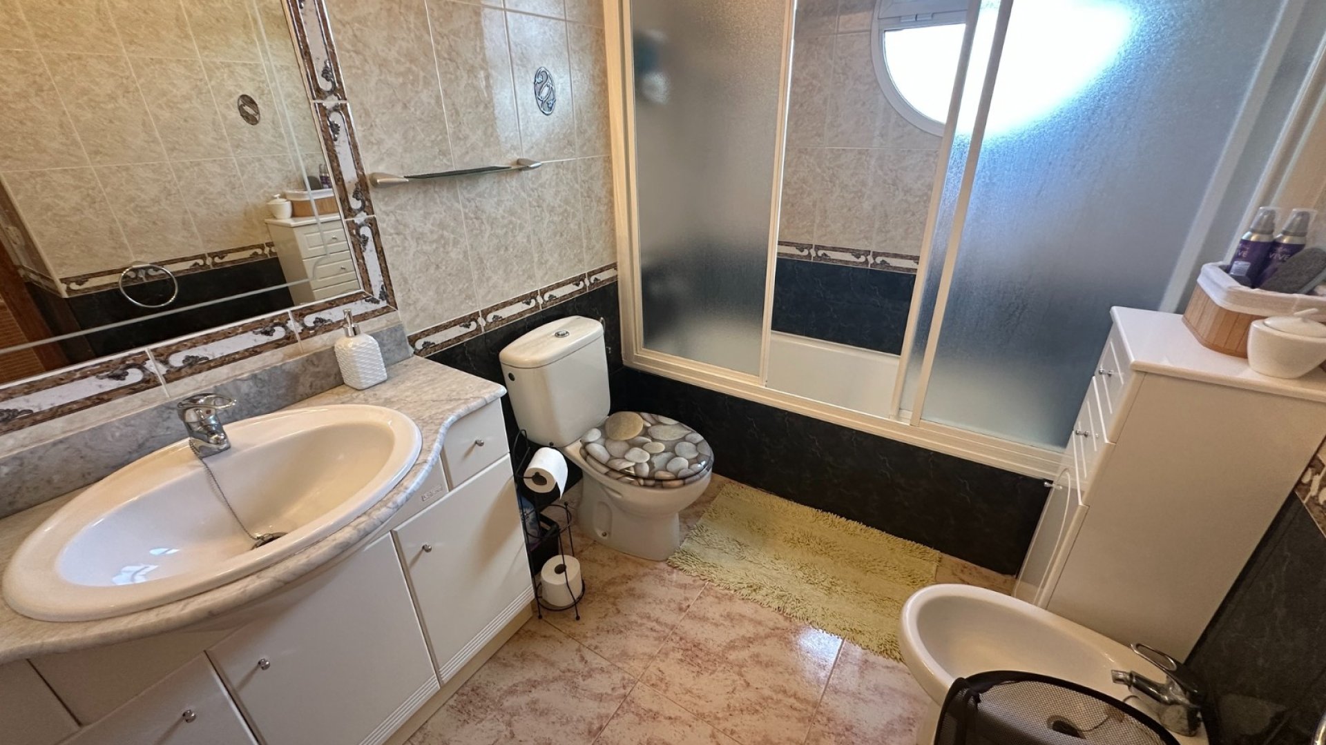 Spread over two floors, the property features three spacious bedrooms and two modern bathrooms , as well as a large ground-floor terrace with a comfortable guest room and a full bathroom. Upstairs, you'll find two additional bedrooms , an elegant bathroom, a private terrace , and a solarium with a jacuzzi —a perfect spot to enjoy moments of absolute relaxation under the Spanish sun .