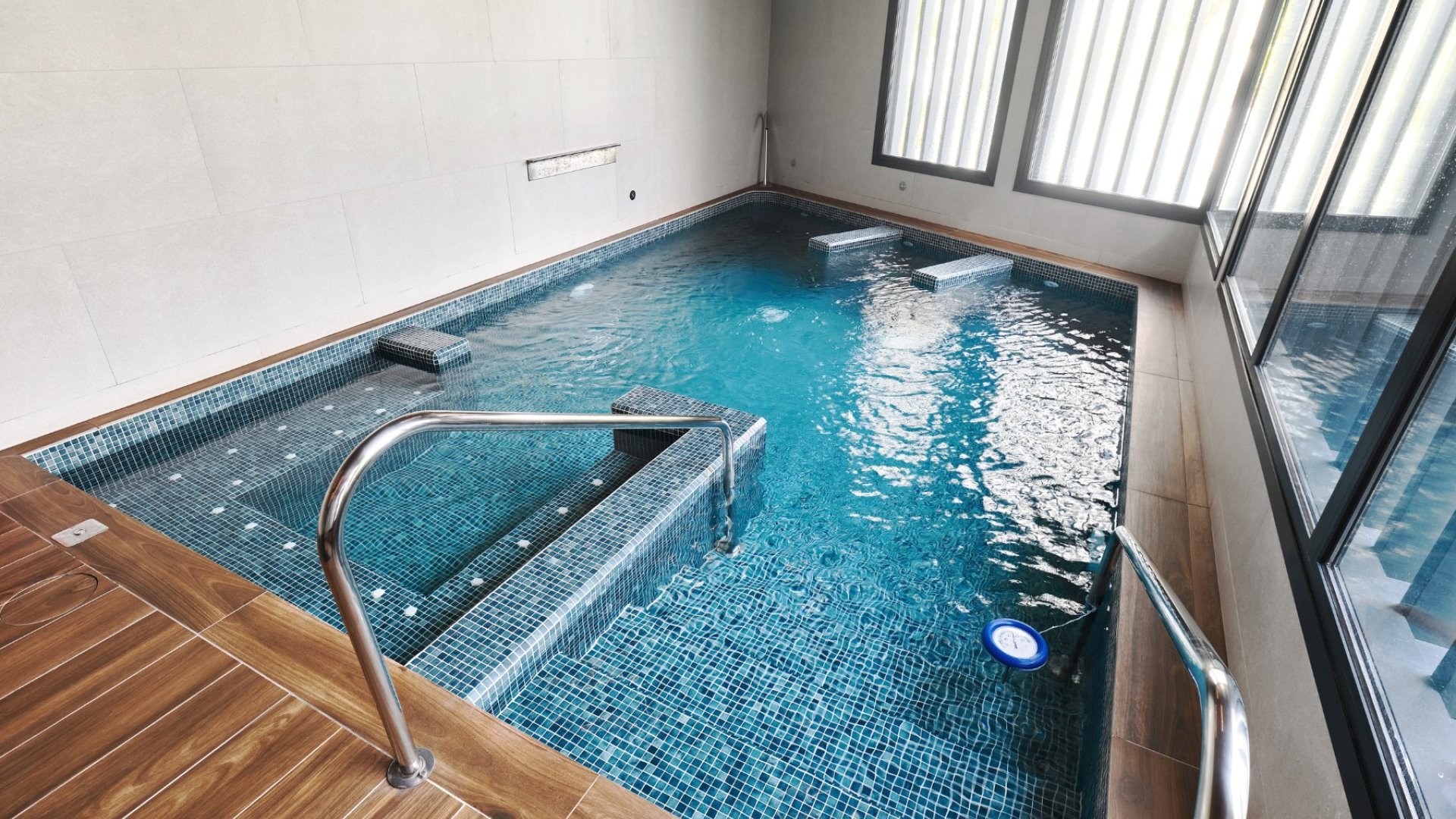 The complex offers exclusive common areas , including two outdoor swimming pools , a gym , a heated indoor pool , a jacuzzi and a magnificent communal rooftop terrace , equipped with a shared kitchen, guest spaces and panoramic sea views , creating a unique environment for relaxing and socializing.