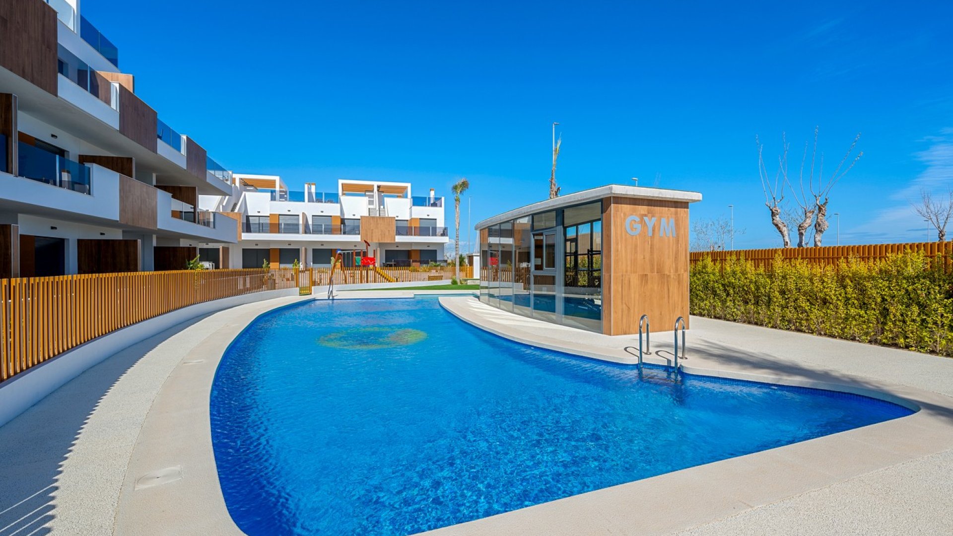 This recently built, unfurnished 2-bedroom apartment is located on the first floor and offers a spacious and bright living environment. The layout has been carefully designed to ensure maximum comfort. Enjoy the beautiful terrace, perfect for outdoor relaxation or dining. Features & Amenities This apartment includes an underground parking space and a private storage room, providing extra convenience and security. Additionally, it offers a range of high-quality features, including: Thermo-acoustic safety glass by ClimaSun. Reinforced entrance door for added security. Underfloor heating in all bathrooms. Energy-efficient aerothermal hot water system. Air conditioning. Modern elevators connecting all floors. Communal swimming pool, jacuzzi, gym, landscaped gardens, and a children's play area. Excellent Location This residential complex is ideally situated in a quiet and family-friendly neighborhood of Pilar de la Horadada. Within a short distance, you will find all essential amenities, including supermarkets, shops, restaurants, and charming squares. Beaches: Torre de la Horadada and Mil Palmeras are just a short distance away, offering beautiful sandy beaches and scenic promenades. Airports: Murcia-Corvera Airport is 40 km away, and Alicante Airport is 55 km away. Golf Courses: Several renowned golf courses are within a 15 km radius. Shopping: The popular Zenia Boulevard shopping center is just 15 km away. Marina: The marina of Torre de la Horadada is only 5 km away. Your New Home Awaits Experience the best of the Costa Blanca lifestyle in this stylish and comfortable apartment. Schedule a viewing today and find your perfect home in Pilar de la Horadada!