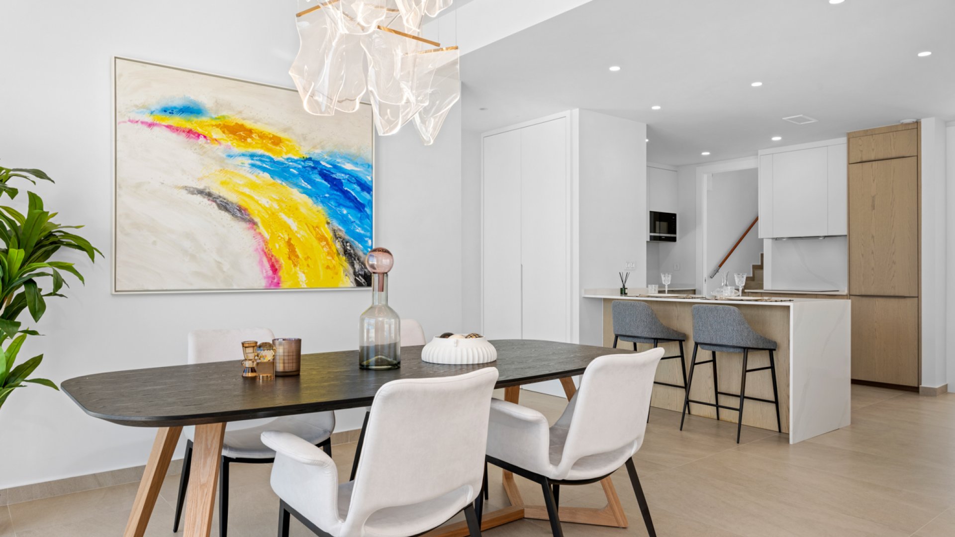 The exterior design of the villas in Orihuela stands out for its elegance and functionality. Each property features a private garden, perfect for enjoying the Mediterranean climate. The presence of a private pool adds a touch of luxury and exclusivity, allowing for refreshing and relaxing in the comfort of home. The terraces, spacious and well-oriented, are ideal for outdoor dining or simply relaxing while enjoying the surroundings. Additionally, the solarium offers extra space for sunbathing and enjoying panoramic views.