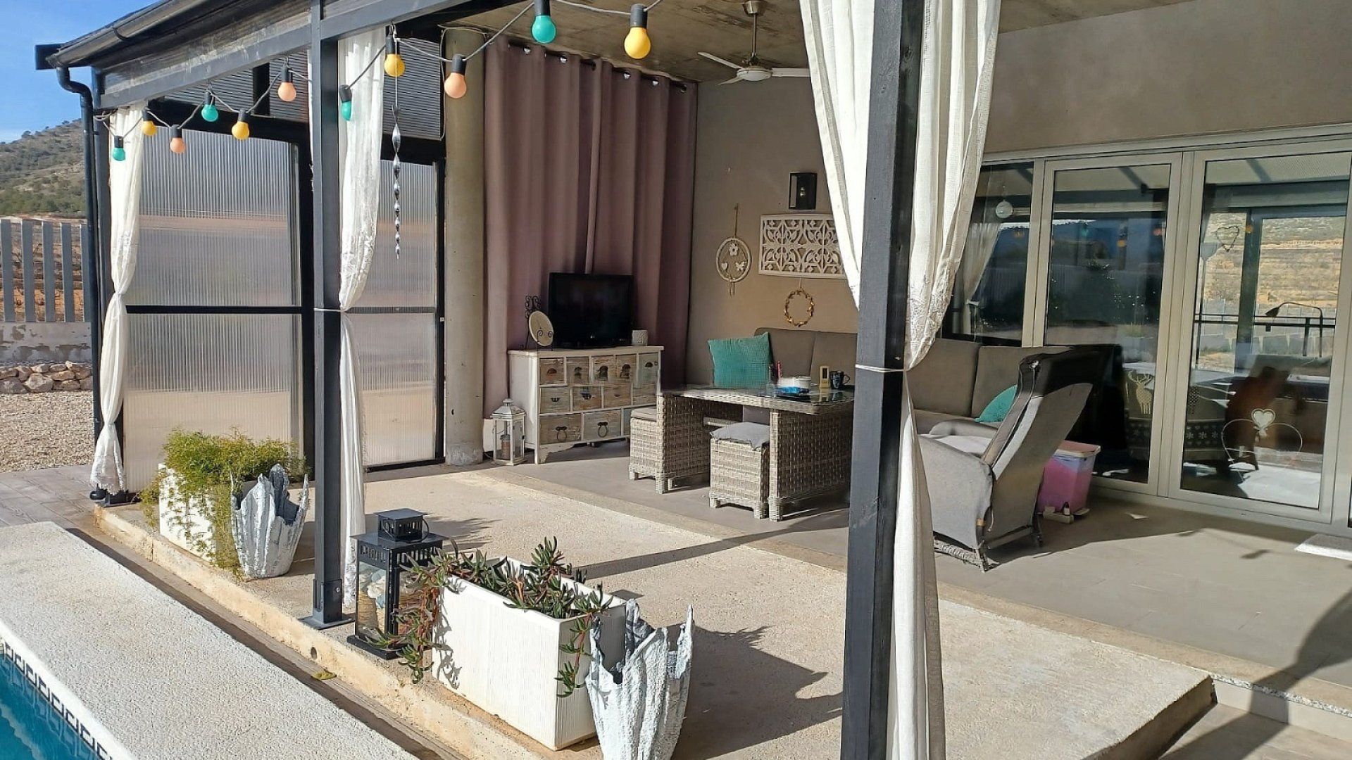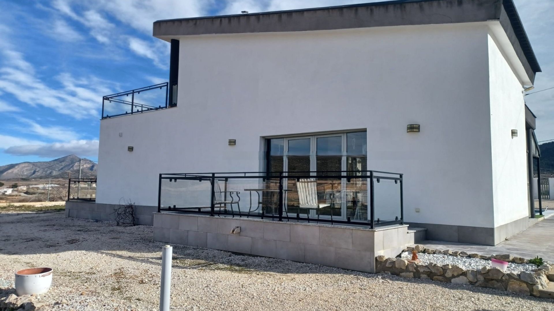 We are delighted to present this elegant and contemporary villa located on the outskirts of a charming village, with two bars and a restaurant just a short walk away. Only a 5-minute drive brings you to Pinoso, where you will find all the amenities needed for everyday living, including supermarkets, shops, a 24-hour medical centre, a wide selection of bars and restaurants — among them a Michelin-starred establishment — as well as excellent sports facilities.