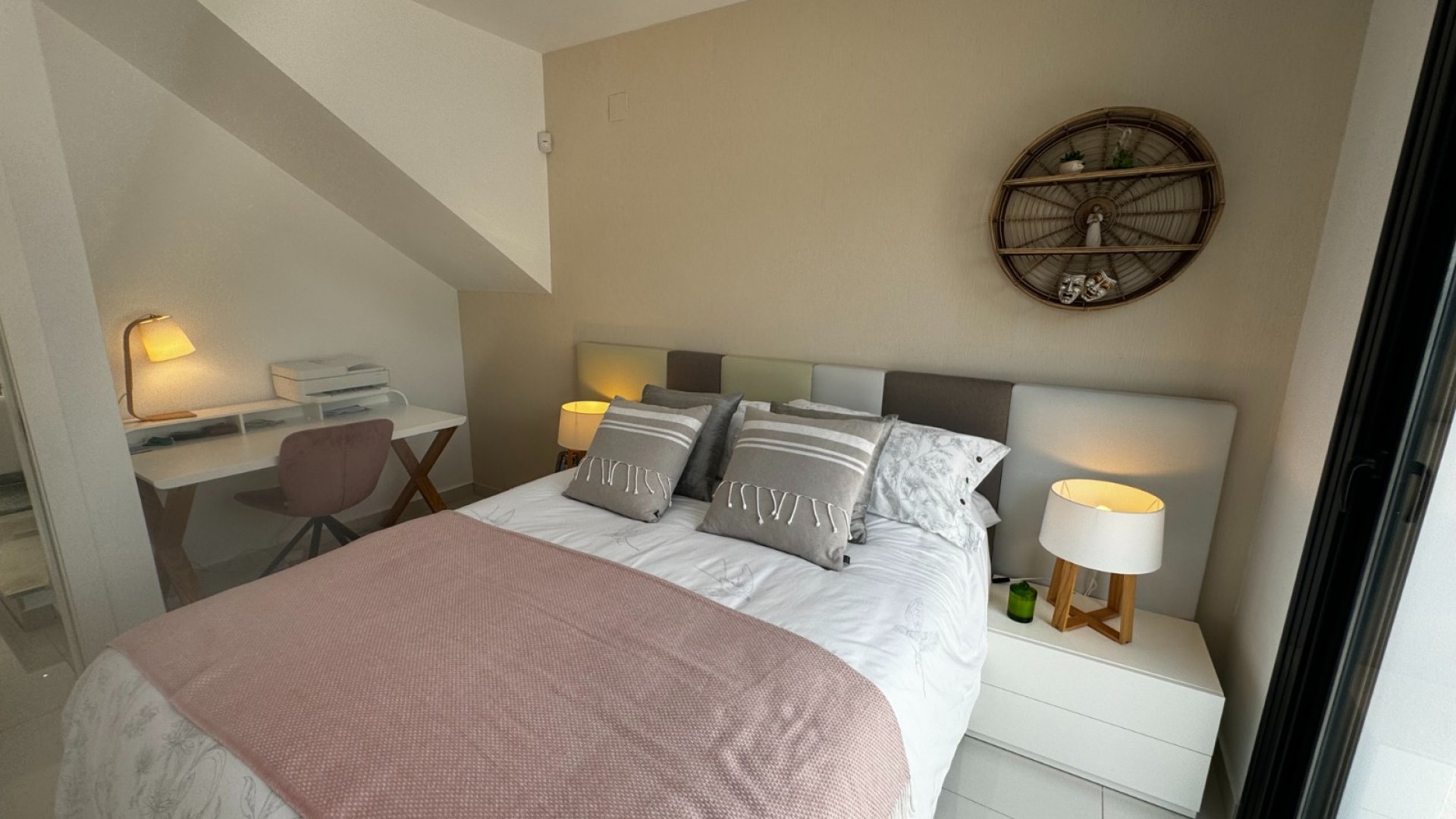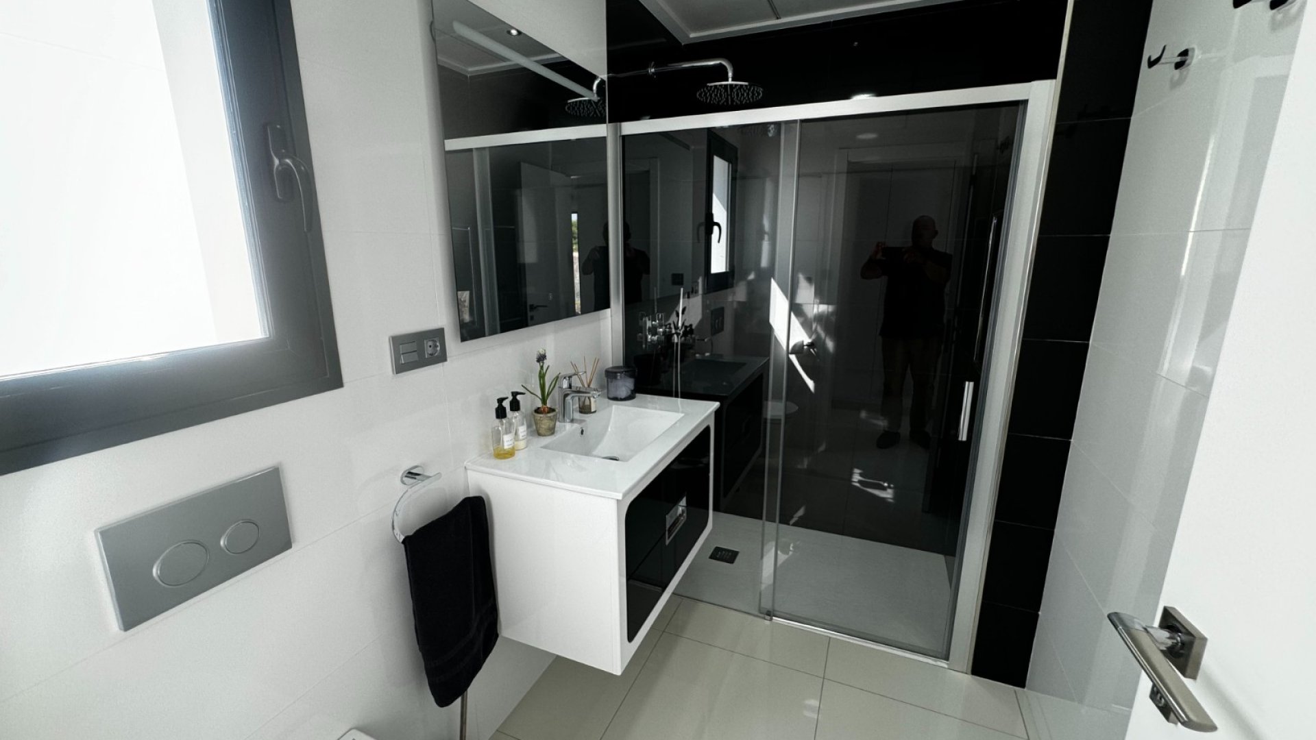 Una villa de lujo con hermosas vistas a los campos de naranjos y al mar. Esta moderna villa es muy espaciosa y tiene tres dormitorios con tres baños, una gran piscina privada y es muy privada. La propiedad está ubicada en el campo de Golf Lo Romero y tiene vistas de 360 grados al mar, golf, montaña y las distintas huertas. La villa tiene aire acondicionado con zona de aire, calefacción por suelo radiante en los baños y persianas eléctricas. Con techos altos y orientación sur, esta es una villa muy luminosa y aireada y es perfecta para cualquiera que busque vistas, paz y tranquilidad.