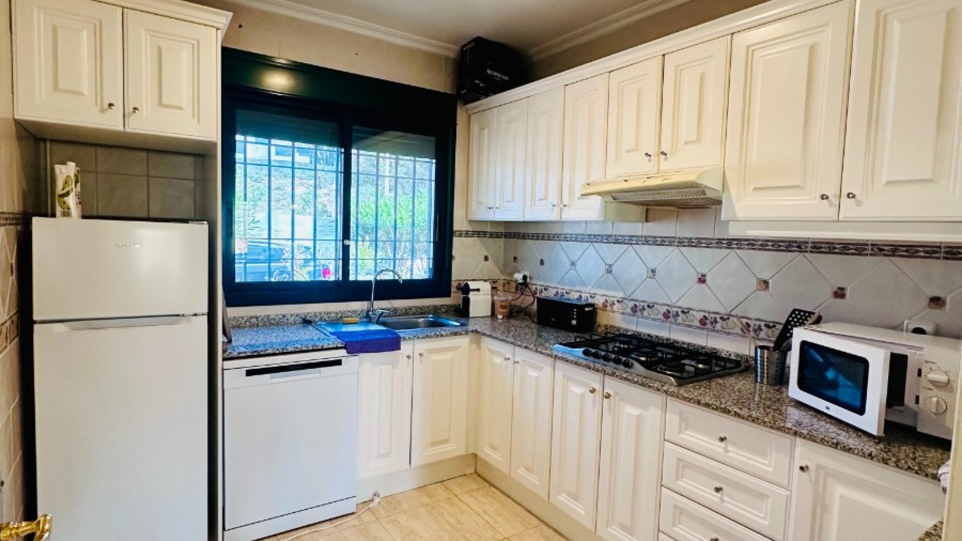 Este impresionante apartamento de 2 habitaciones y 2 baños, ubicado en la planta baja de una urbanización prestigiosa, ofrece la combinación perfecta de lujo y confort. Con su orientación hacia el sur, disfrutarás de abundante luz natural y una atmósfera cálida y acogedora durante todo el año. Entra en el espacioso salón de 45 m², ideal para relajarte o entretener a tus invitados. La cocina separada, completamente equipada, cuenta con una práctica lavandería, manteniendo todo al alcance de la mano. Ambas habitaciones están equipadas con aire acondicionado y tienen baños en suite, asegurando la máxima privacidad y comodidad. Los armarios empotrados ofrecen un amplio espacio de almacenamiento, y la gran terraza soleada de 21 m² ofrece vistas impresionantes de la naturaleza, perfecta para cenar al aire libre o simplemente disfrutar de la tranquilidad. Este apartamento se puede vender completamente amueblado y forma parte de una comunidad bien mantenida con hermosos jardines y una fantástica piscina comunitaria. A solo unos minutos, encontrarás campos de golf de primer nivel como Campoamor, Villamartin, Las Ramblas y Las Colinas. También disfrutarás de la proximidad al centro comercial La Fuente, con varios restaurantes, playas a solo 4 km y el vibrante Zenia Boulevard. - Habitaciones:2 - Baños:2 - Superficie Construida:103 m² - Armarios Empotrados:3 - Año de Construcción:2003 - Orientación:Sur Servicios: - Aire Acondicionado - Piscina Comunitaria - Parque Infantil - Totalmente amueblado, incluyendo 2 cómodos sofás cama (nunca utilizados como camas) - Muebles nuevos (interiores y exteriores) comprados hace 3 años y un colchón nuevo en la habitación principal - Cocina completamente equipada con electrodomésticos modernos - Interfono - Lavandería - Puerta Reforzada - Sistema de Alarma y Cámaras - Seguridad 24/7 Ubicado a solo 600 m de Mercadona, 800 m de Aldi y 740 m del bullicioso centro comercial La Fuente, lleno de bares y restaurantes. ¡No pierdas la oportunidad de tener tu hogar ideal en el soleado Campoamor!