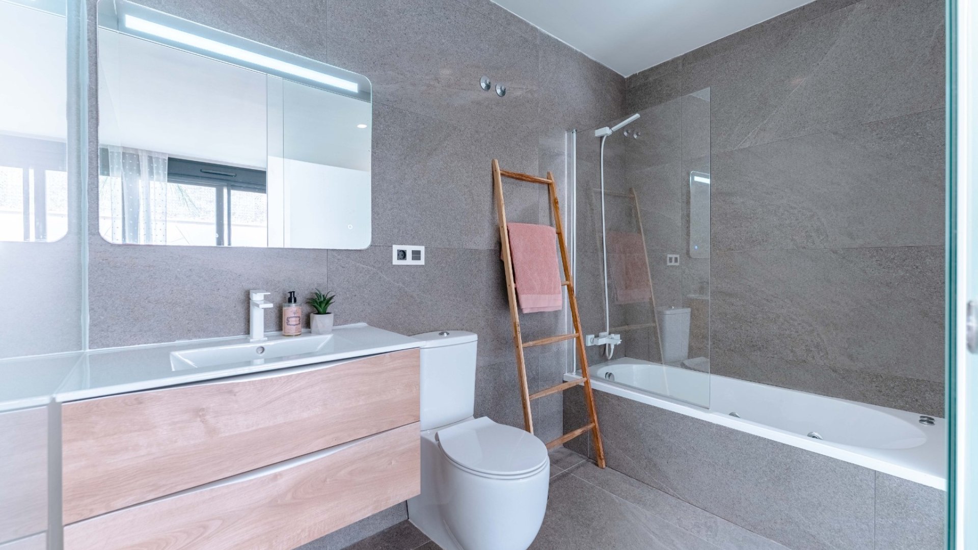 ¡Bienvenido a la villa de tus sueños con una ubicación tranquila a las afueras del centro de San Miguel de Salinas! Esta impresionante villa independiente moderna de reciente construcción ofrece el epítome de una vida de lujo con su variedad de características atractivas. Al entrar, será recibido por un interior espacioso y contemporáneo distribuido en dos plantas. La planta principal cuenta con calefacción por suelo radiante, lo que garantiza calidez y comodidad en todo momento. Las amplias salas de estar se combinan a la perfección con la elegante cocina, creando un espacio ideal para recibir visitas de amigos y familiares. Salga a su oasis privado, donde le espera una piscina climatizada, perfecta para disfrutar durante todo el año. Adopte un estilo de vida ecológico con el sistema de energía solar, reduciendo su huella de carbono y ahorrando en costos de energía. Disfrute de la comodidad de los pisos con calefacción no solo en el nivel principal sino también en los baños y el sótano, que ofrecen la máxima relajación y comodidad. El filtro de agua garantiza pureza y frescura con cada gota, mejorando tu bienestar general. Ascienda a la terraza de la azotea y déjese cautivar por las impresionantes vistas panorámicas del resplandeciente mar y el lago salado rosado, creando un encantador telón de fondo para momentos inolvidables. Manténgase fresco durante los meses más cálidos con aire acondicionado en toda la villa. El jardín y la terraza meticulosamente diseñados ofrecen serenos espacios al aire libre para relajarse y disfrutar del sol del Mediterráneo. La comodidad se combina con el lujo con un garaje con capacidad para dos automóviles, lo que garantiza un estacionamiento seguro para sus vehículos. Ya sea que esté organizando una velada o disfrutando de una velada tranquila en casa, esta villa ofrece el escenario perfecto para cada ocasión. El piso de abajo está equipado con su propia cocina para invitados o puede separar los dos pisos con entradas independientes para crear 1 o 2 unidades alquilables y totalmente equipadas. No pierda esta oportunidad de ser dueño de un pedazo de paraíso en San Miguel de Salinas. Experimente lo máximo de la vida contemporánea en esta exquisita villa que cuenta con vistas incomparables y comodidades de lujo. ¡La casa de tus sueños te espera!