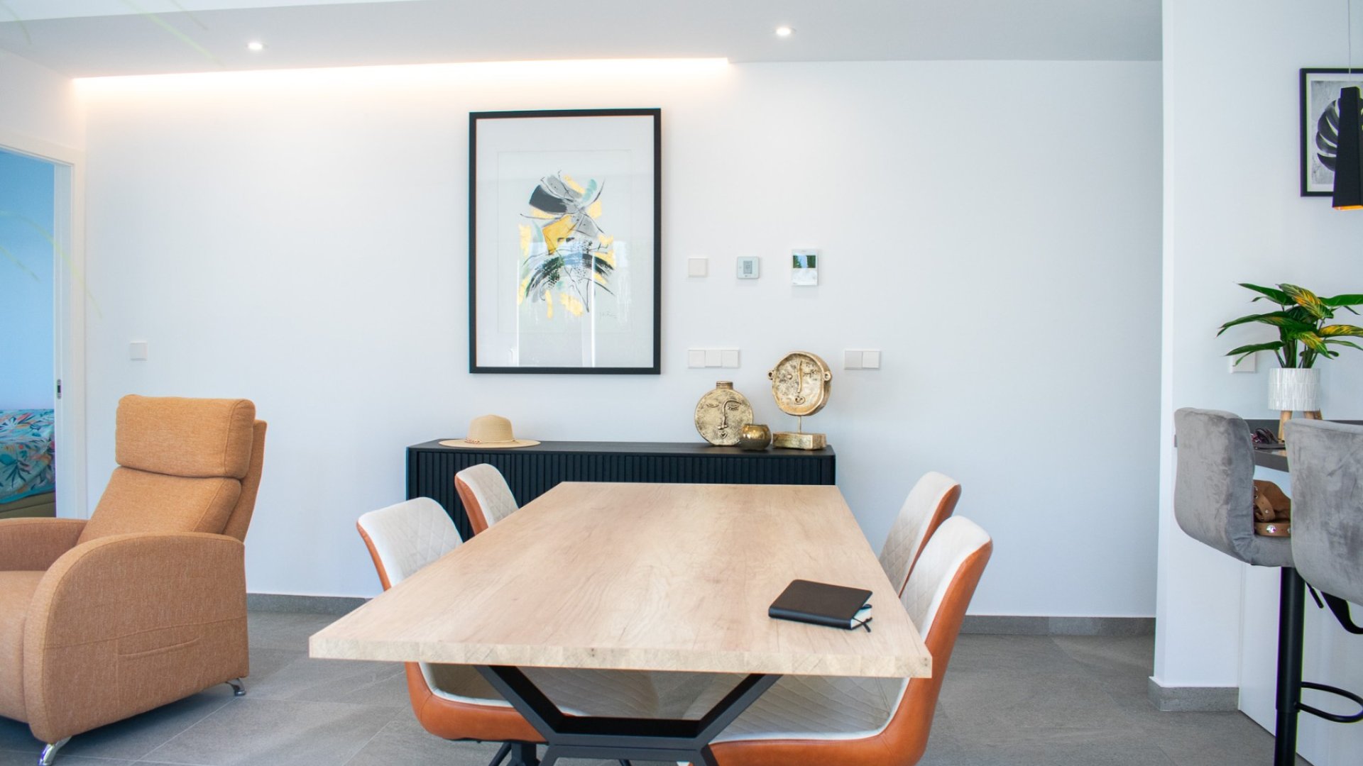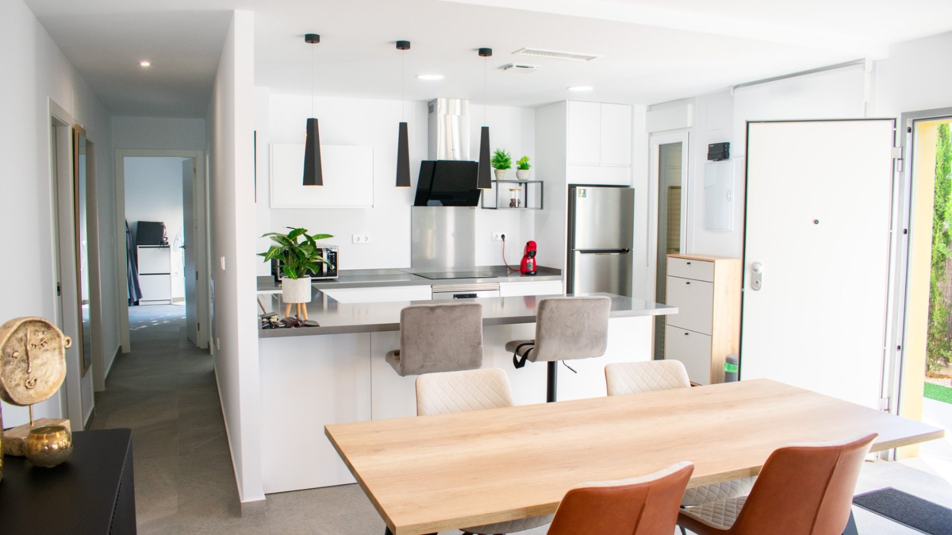 La cocina renovada, con una isla de estilo americano, crea un espacio ideal para disfrutar y recibir invitados, integrándose a la perfección con el salón de planta abierta y la zona exterior. En el exterior, encontrará una preciosa piscina privada climatizada , perfecta para disfrutar durante todo el año, rodeada de un jardín paisajístico y una terraza con vistas despejadas, ideal para relajarse o recibir visitas. Además, cuenta con paneles solares para una mayor eficiencia energética, un amplio trastero bajo la escalera de acceso a la azotea y un sistema AirZone que permite regular la temperatura mediante un sistema central de climatización. También incluye aparcamiento privado dentro de la propiedad y preinstalación para jacuzzi. La casa se vende completamente amueblada, tanto por dentro como por fuera. Una propiedad que ofrece estilo, confort y sostenibilidad , en una ubicación privilegiada, rodeada de naturaleza, campos de golf y a pocos minutos de las playas de la Costa Blanca .