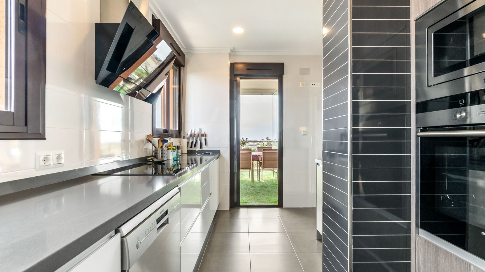 Bienvenido a este luminoso y bien distribuido apartamento en esquina, ubicado en la segunda planta del popular complejo Royal Park Green Spa — una urbanización cerrada y tranquila con modernas instalaciones y una ubicación atractiva cerca de la playa, centros comerciales y campos de golf. El apartamento tiene orientación sur y está en una posición de esquina, lo que garantiza mucha luz natural y mayor privacidad. Desde la terraza se disfruta de una hermosa y despejada vista del paisaje circundante — con vistas al mar Mediterráneo, Mar Menor, La Manga y las montañas a lo lejos. La vivienda consta de salón, cocina independiente, lavadero, tres dormitorios y dos baños. El salón es luminoso y acogedor, con acceso directo a una maravillosa terraza orientada al sur. La terraza cuenta con grandes paneles de cristal correderos que se pueden abrir — perfectos para disfrutar del sol y las vistas durante todo el año. Royal Park Green Spa ofrece atractivas zonas comunes que incluyen piscina exterior, áreas verdes bien cuidadas y un exclusivo spa interior con piscina climatizada, sauna y gimnasio. También hay acceso a una amplia terraza comunitaria en la azotea con bonitas vistas al entorno. El apartamento se vende completamente amueblado y listo para entrar a vivir. Incluye plaza de parking privada en el garaje y trastero. La ubicación es ideal — tranquila y privada, pero cercana a todo lo necesario. A poca distancia a pie encontrarás supermercado, cafeterías y restaurantes. El gran centro comercial La Zenia Boulevard está a solo unos minutos en coche. Las playas de arena más cercanas, en Campoamor y Cabo Roig, se encuentran a unos 5 minutos, y hay cuatro campos de golf en la misma zona. Un apartamento en esquina bien distribuido y listo para entrar a vivir, con preciosas vistas, terraza soleada con cerramiento de cristal, y una ubicación que combina tranquilidad y confort con cercanía a todo.