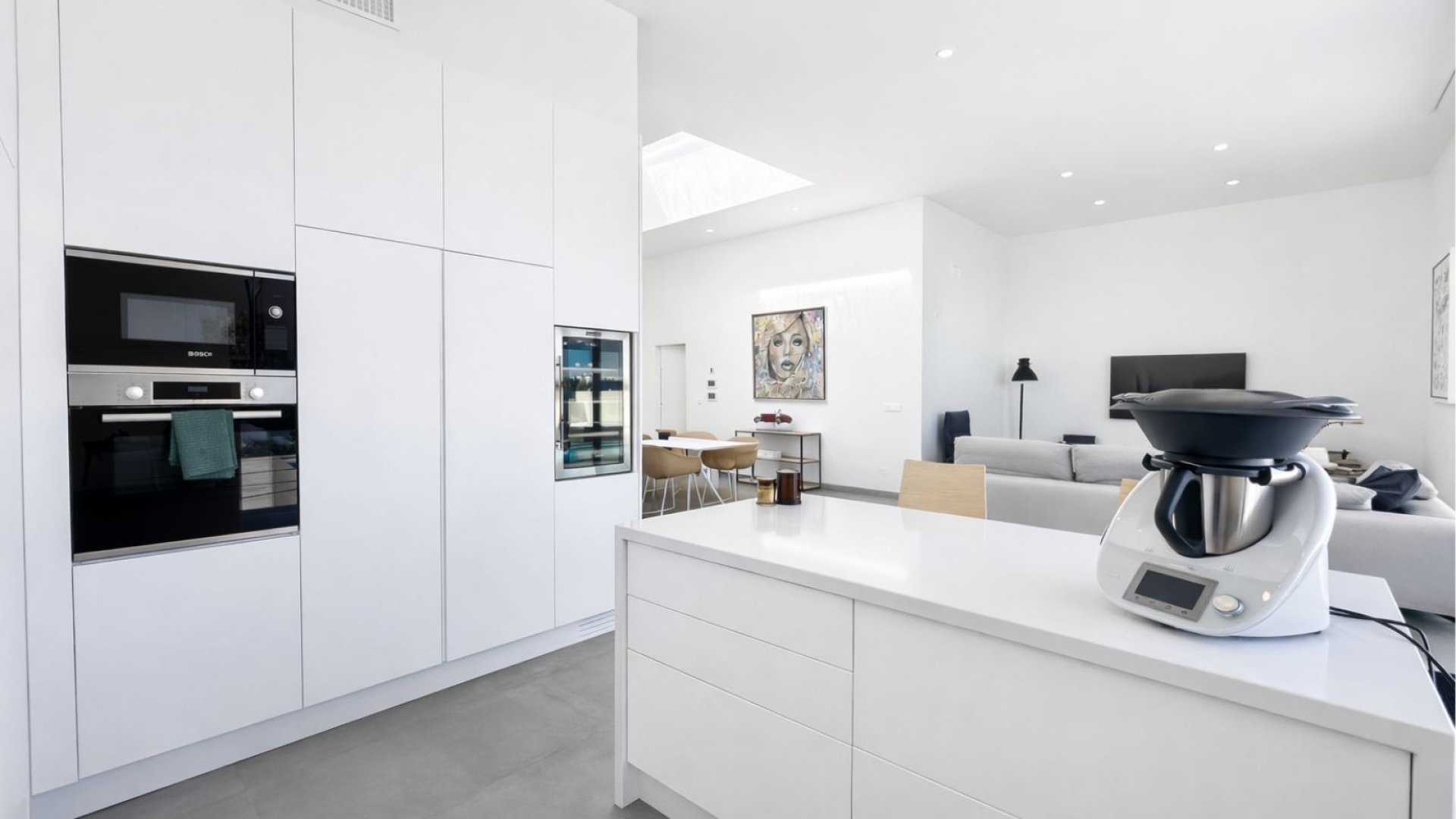 La vivienda destaca por sus techos altos y una excepcional entrada de luz natural, creando espacios amplios y elegantes. El corazón de la villa es un luminoso salón con cocina abierta totalmente equipada, conectado mediante un espectacular ventanal a una terraza sur de 87 m², ideal para disfrutar del clima mediterráneo durante todo el año. En el exterior, una piscina climatizada de agua salada de 10 metros ofrece vistas relajantes al bosque de pinos, aportando una sensación única de bienestar y exclusividad.