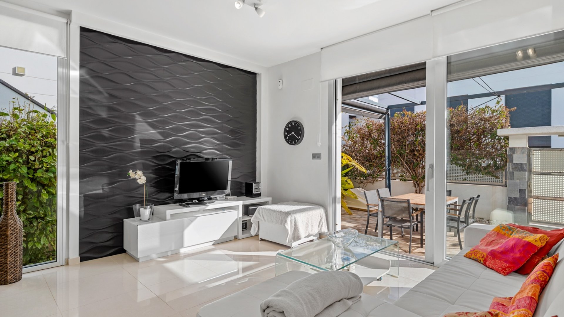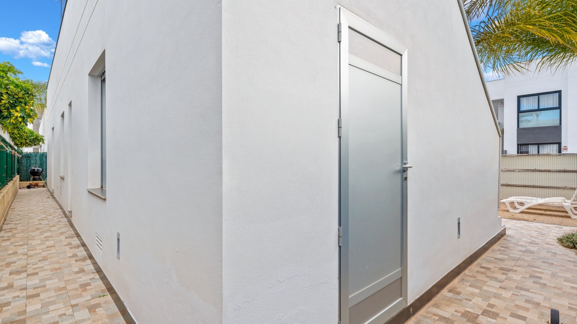 La casa cuenta con 90 m² construidos y se asienta sobre una parcela de 230 m², ofreciendo un equilibrio perfecto entre comodidad interior y espacios exteriores para disfrutar al máximo del clima mediterráneo. Dispone de 3 habitaciones y 2 baños, destacando la habitación principal en suite, con baño privado y un amplio ventanal orientado hacia la zona de la piscina, lo que permite que la estancia reciba una fantástica luz natural durante gran parte del día.