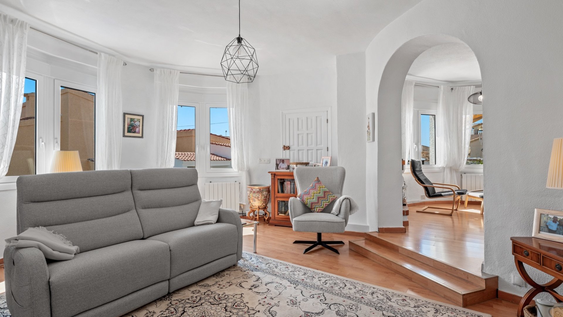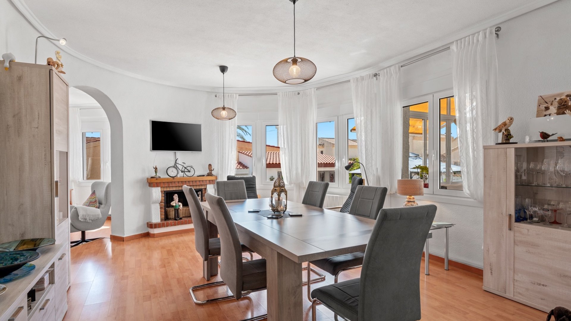 La casa dispone de una amplia y moderna cocina, perfectamente integrada con un espacioso comedor, creando un ambiente ideal para reuniones con amigos y familiares. Junto al comedor se encuentra una luminosa sala de estar, perfecta para relajarse y disfrutar del día a día. La propiedad también incluye un invernadero, que añade espacio habitable adicional lleno de luz natural.
