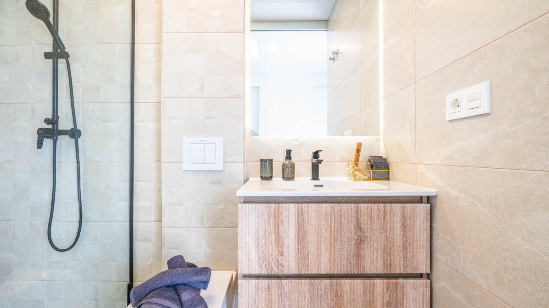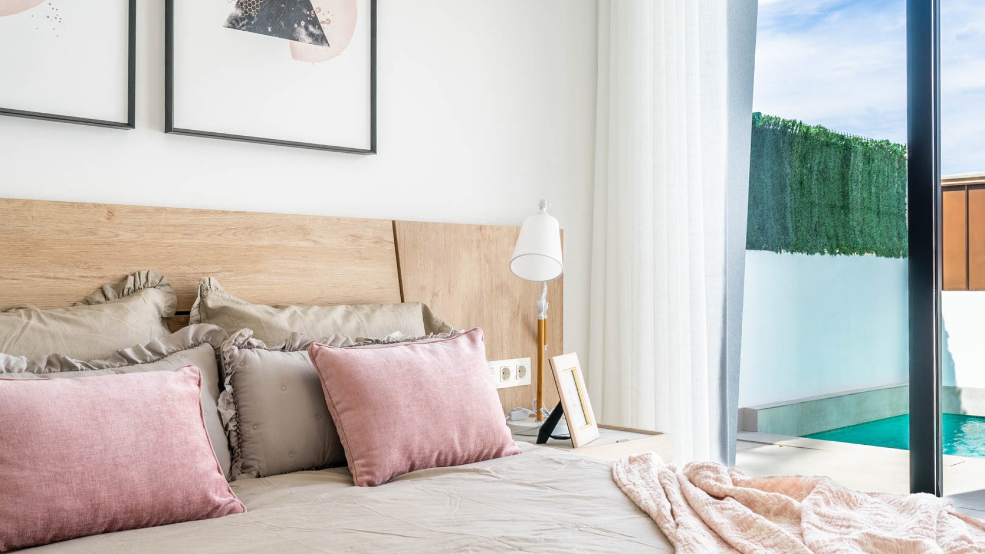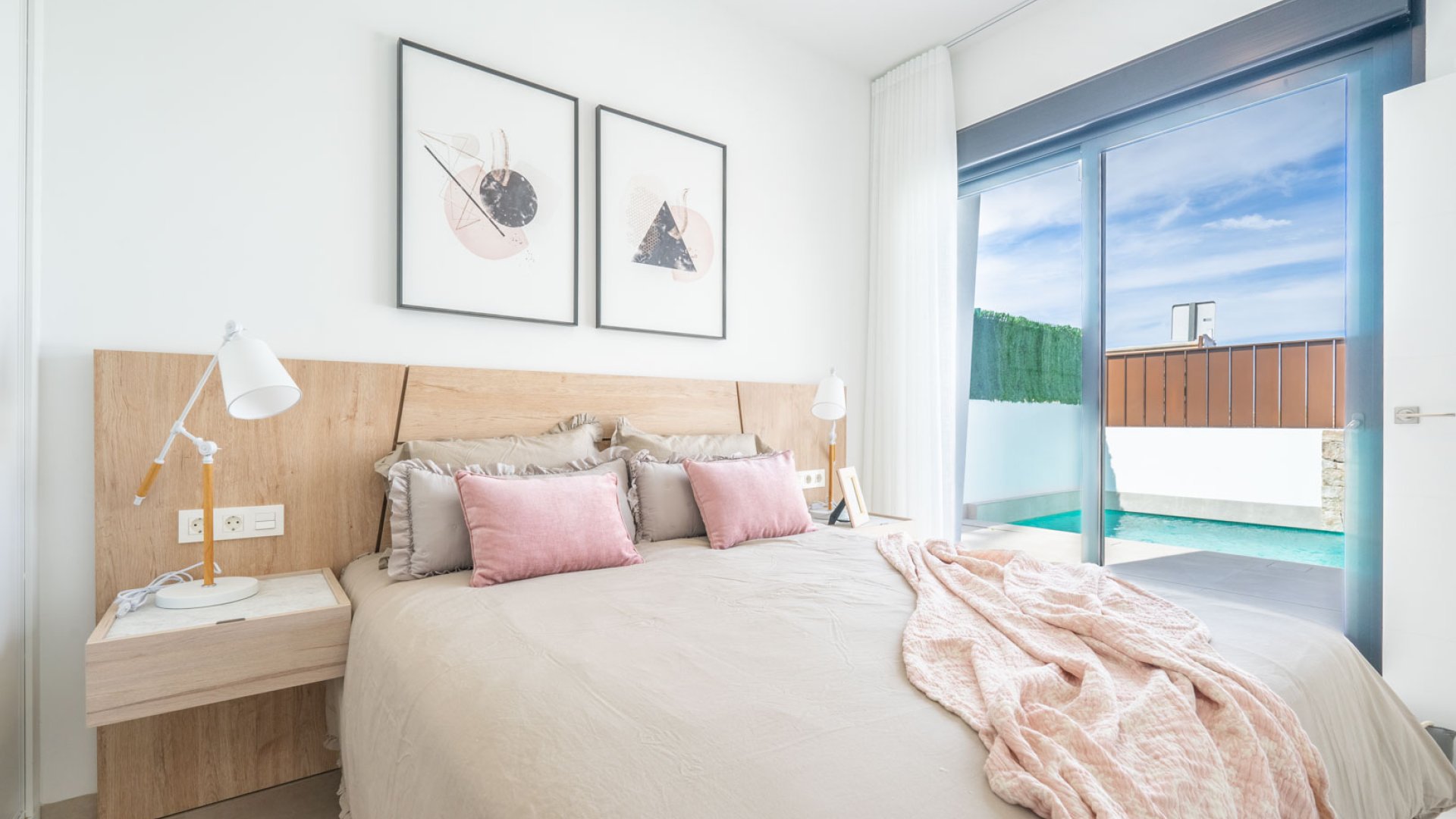 Les intérieurs de ces villas sont conçus pour offrir un maximum de confort et de fonctionnalité. La disposition sur un seul niveau facilite la mobilité et crée une sensation d'espace. La cuisine, équipée d'appareils modernes, s'intègre parfaitement au salon-salle à manger, créant ainsi un espace idéal pour la vie quotidienne et les réceptions. Les 3 chambres, toutes doubles, comprennent des armoires équipées de tiroirs et la chambre principale dispose d'une salle de bains en-suite. Les salles de bains modernes et élégantes sont équipées de miroirs à LED. La pré-installation de la climatisation assure un environnement confortable tout au long de l'année.