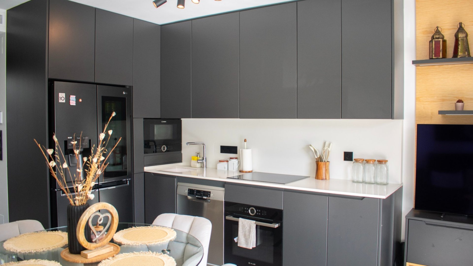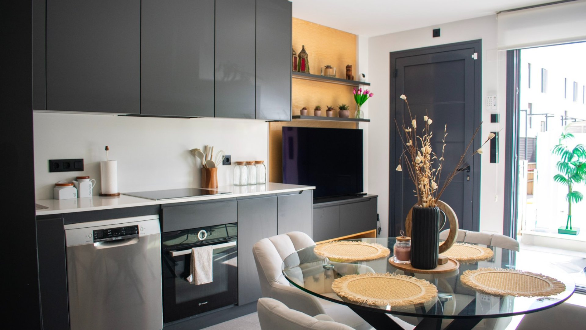 Le spacieux salon-salle à manger offre une atmosphère chaleureuse et lumineuse, avec un accès direct à une terrasse privée offrant une vue imprenable sur la mer et les montagnes , également appréciable depuis deux chambres . La cuisine ouverte entièrement équipée est conçue pour ceux qui apprécient le style et la praticité. Au niveau inférieur, un espace polyvalent baigné de lumière naturelle offre de multiples possibilités : il peut servir de chambre supplémentaire, de home cinéma, de salle de jeux, de dressing ou de rangement.