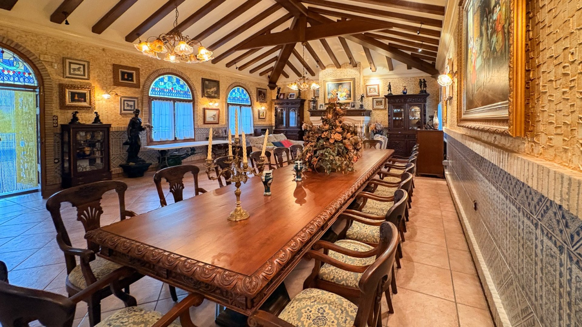 Le domaine comprend un spectaculaire bâtiment indépendant, conçu comme salle de réception pour les grands rassemblements , construit en pierre naturelle, en bois et avec des poutres apparentes , dans le même style colonial que le reste de la propriété. Ce bâtiment est réparti sur deux étages :