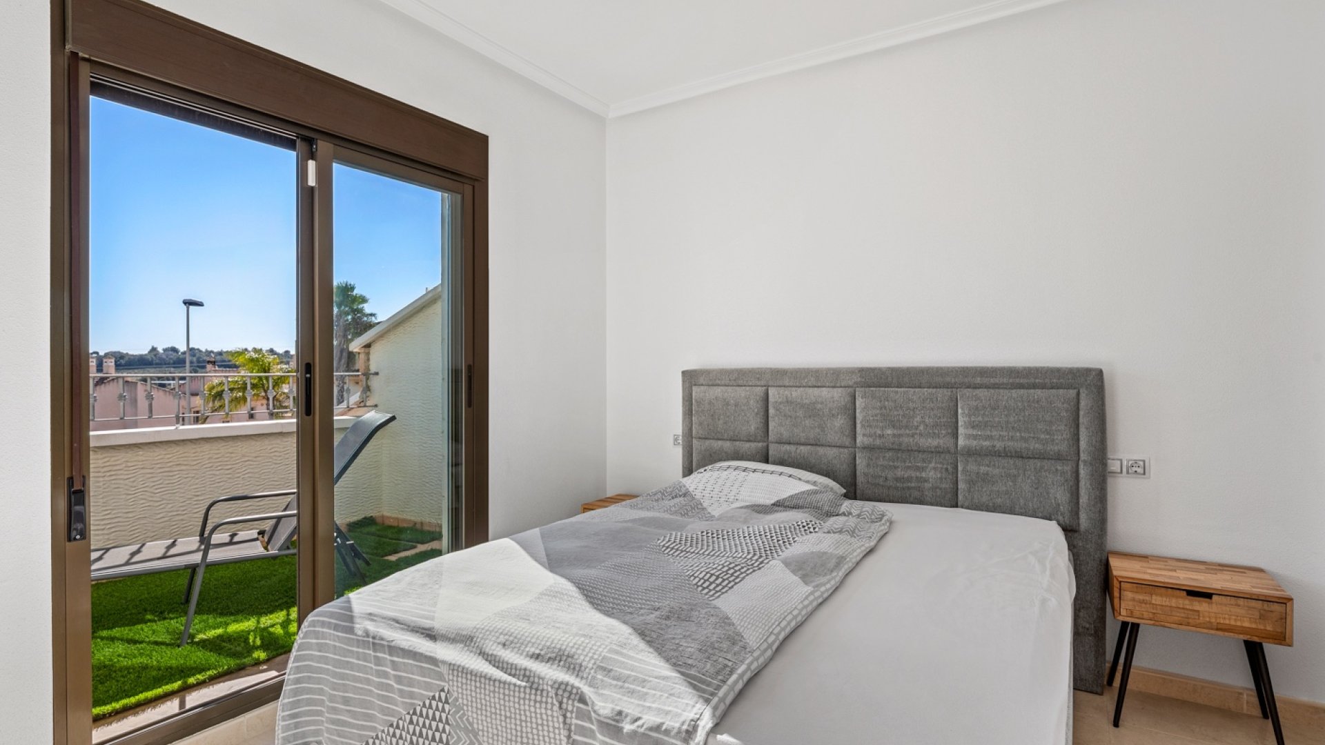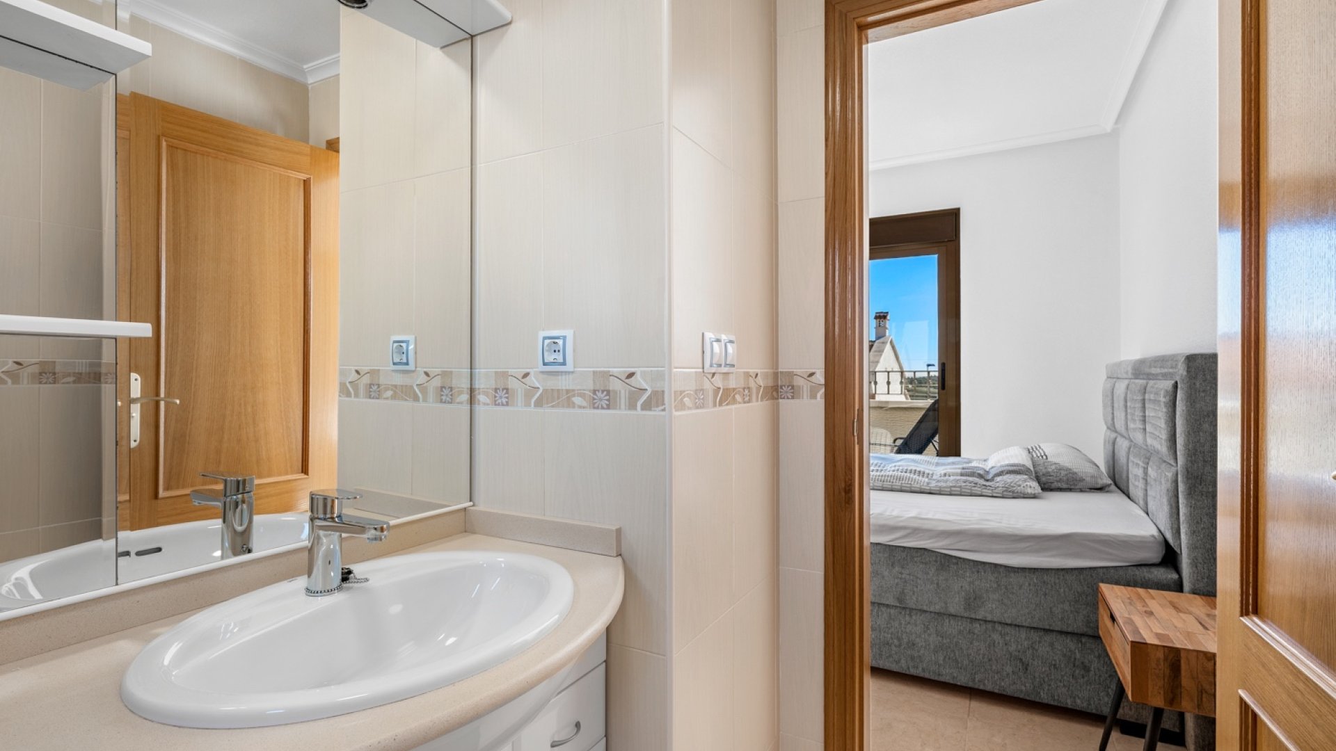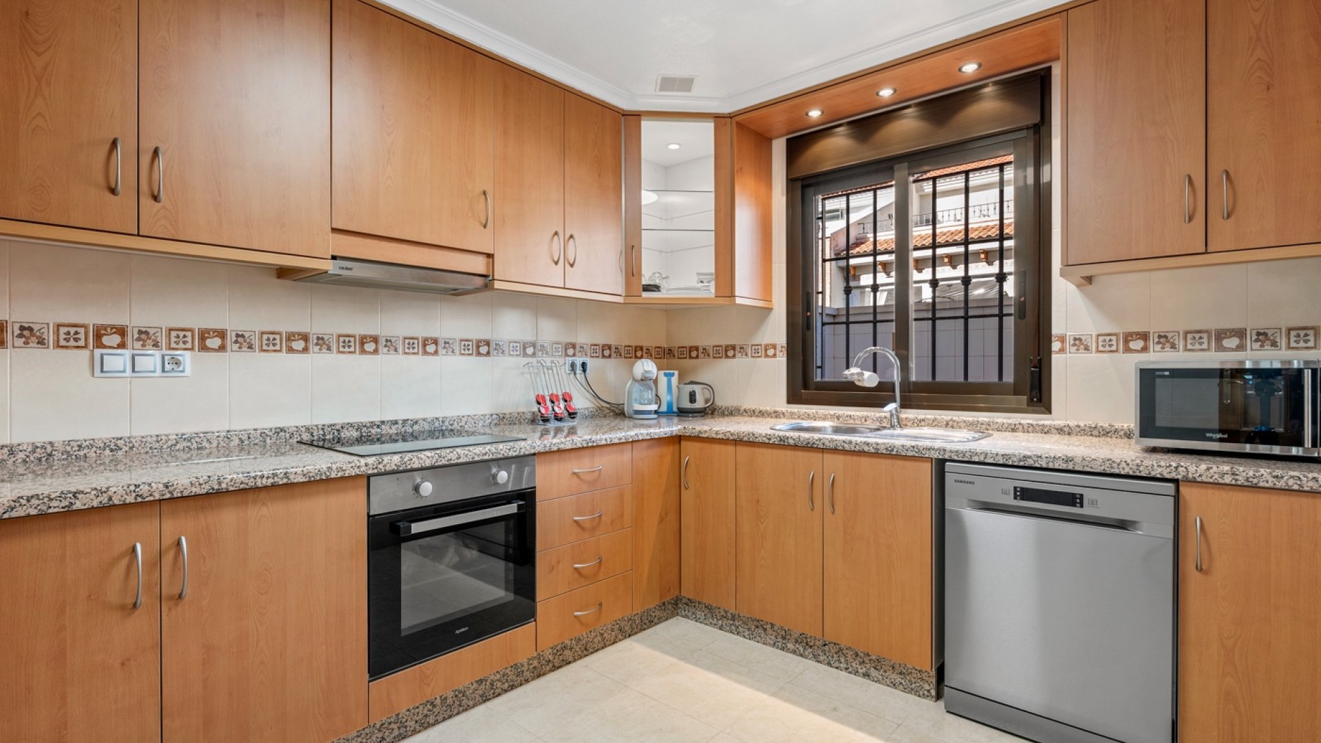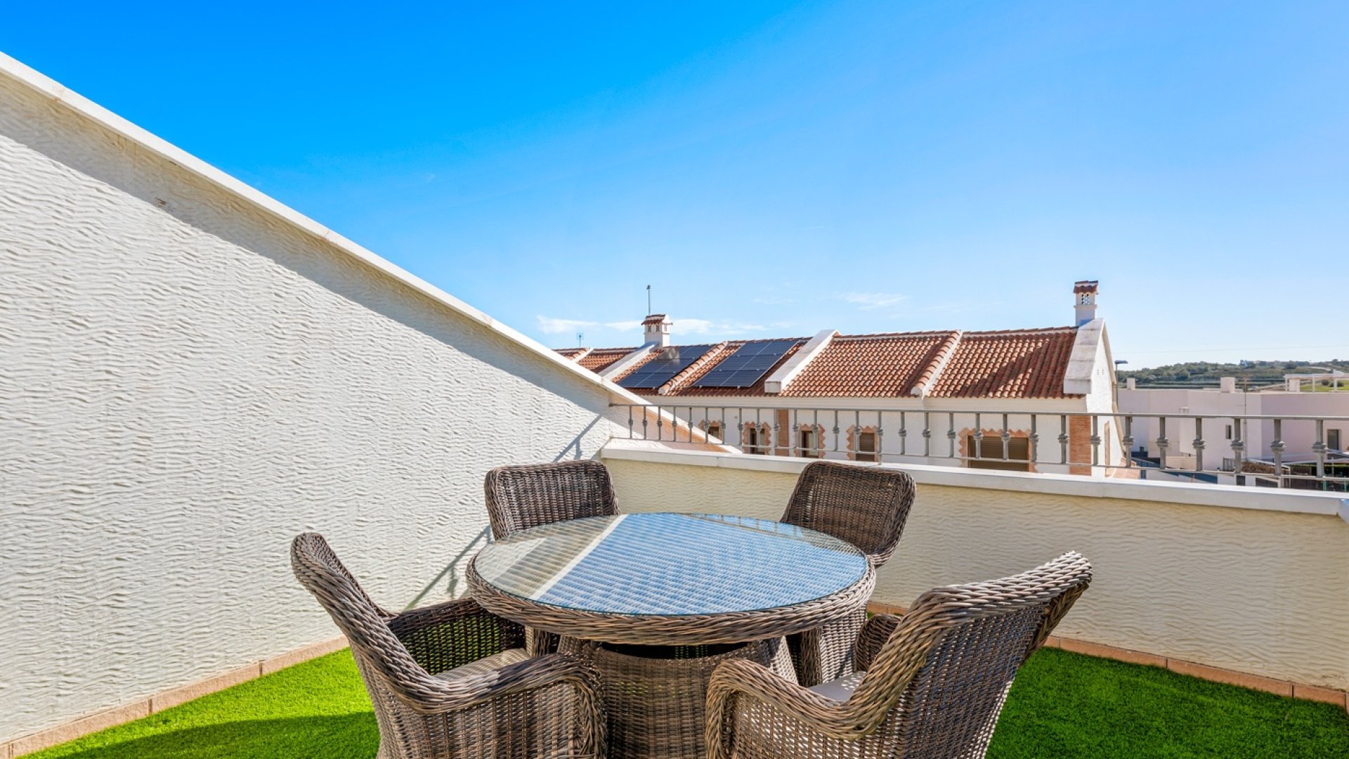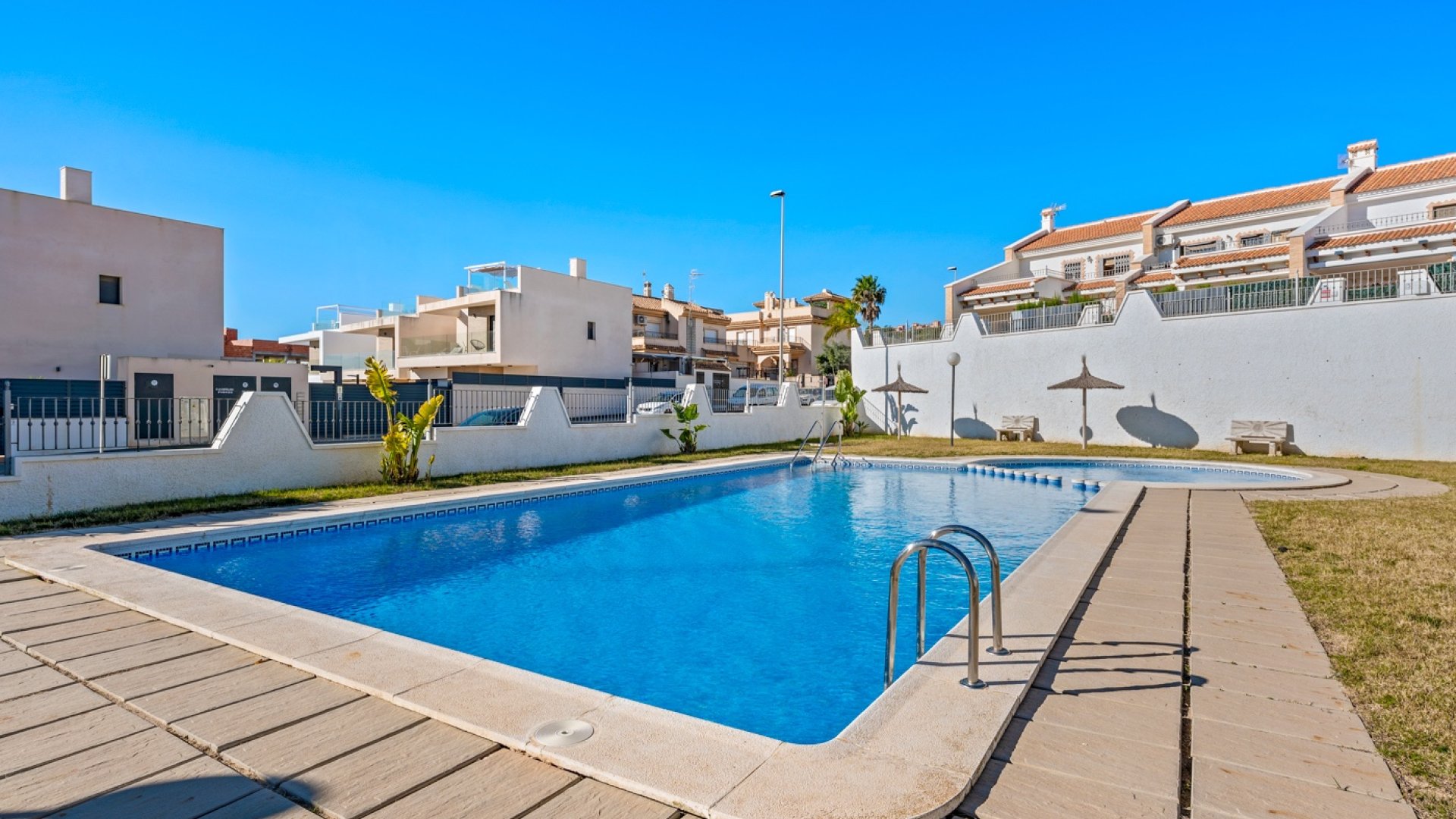 Charmante maison de ville avec jardin à Villas María – San Miguel de Salinas Cette maison de ville, en parfait état, comprend 3 chambres et 3 salles de bains et se situe dans le charmant complexe résidentiel Villas María à San Miguel de Salinas. C'est le logement idéal pour ceux qui recherchent un confort optimal sous le soleil espagnol, que ce soit pour y vivre à l'année ou pour les vacances. La maison est agencée de façon pratique et bien pensée. Au rez-de-chaussée, vous trouverez une chambre et une salle de bains, idéales pour les invités ou pour ceux qui préfèrent un logement de plain-pied. La cuisine séparée et entièrement équipée s'ouvre sur une terrasse attenante, parfaite pour prendre le petit-déjeuner au soleil. Le vaste espace de vie ouvert, comprenant salon et salle à manger, bénéficie d'une abondante lumière naturelle et s'ouvre sur un agréable jardin exposé sud-est, un endroit merveilleux pour profiter de la vie en plein air toute l'année. Il y a un grand parking souterrain sous la maison avec : une place de parking privée un local de rangement spacieux d'environ 15 m² La maison fait partie d'une urbanisation agréable et bien entretenue et se situe à seulement 2 km du centre du village , où vous trouverez toutes les commodités telles que des commerces, des restaurants, des écoles, une pharmacie et des terrasses accueillantes. San Miguel de Salinas est un charmant village espagnol authentique situé au sud de la Costa Blanca. Bénéficiant d'une situation légèrement surélevée entre les lagunes salées de Torrevieja et la mer Méditerranée, il offre des vues imprenables et un microclimat sain. Ce qui rend cet endroit si attrayant : À seulement 15 minutes en voiture des plages d'Orihuela Costa À proximité de plusieurs terrains de golf renommés tels que Las Colinas, Campoamor et Villamartín Bonnes liaisons avec les aéroports d'Alicante et de Murcie Un quartier résidentiel calme avec des résidents internationaux Marché hebdomadaire et place de village animée à l'ambiance locale San Miguel allie tranquillité et nature à une excellente accessibilité et à toutes les commodités à proximité immédiate — un lieu idéal pour ceux qui souhaitent découvrir l'Espagne authentique sans sacrifier leur confort. Communauté / VVE : 52 € / an Taxe foncière (Suma) : 350 €/an
