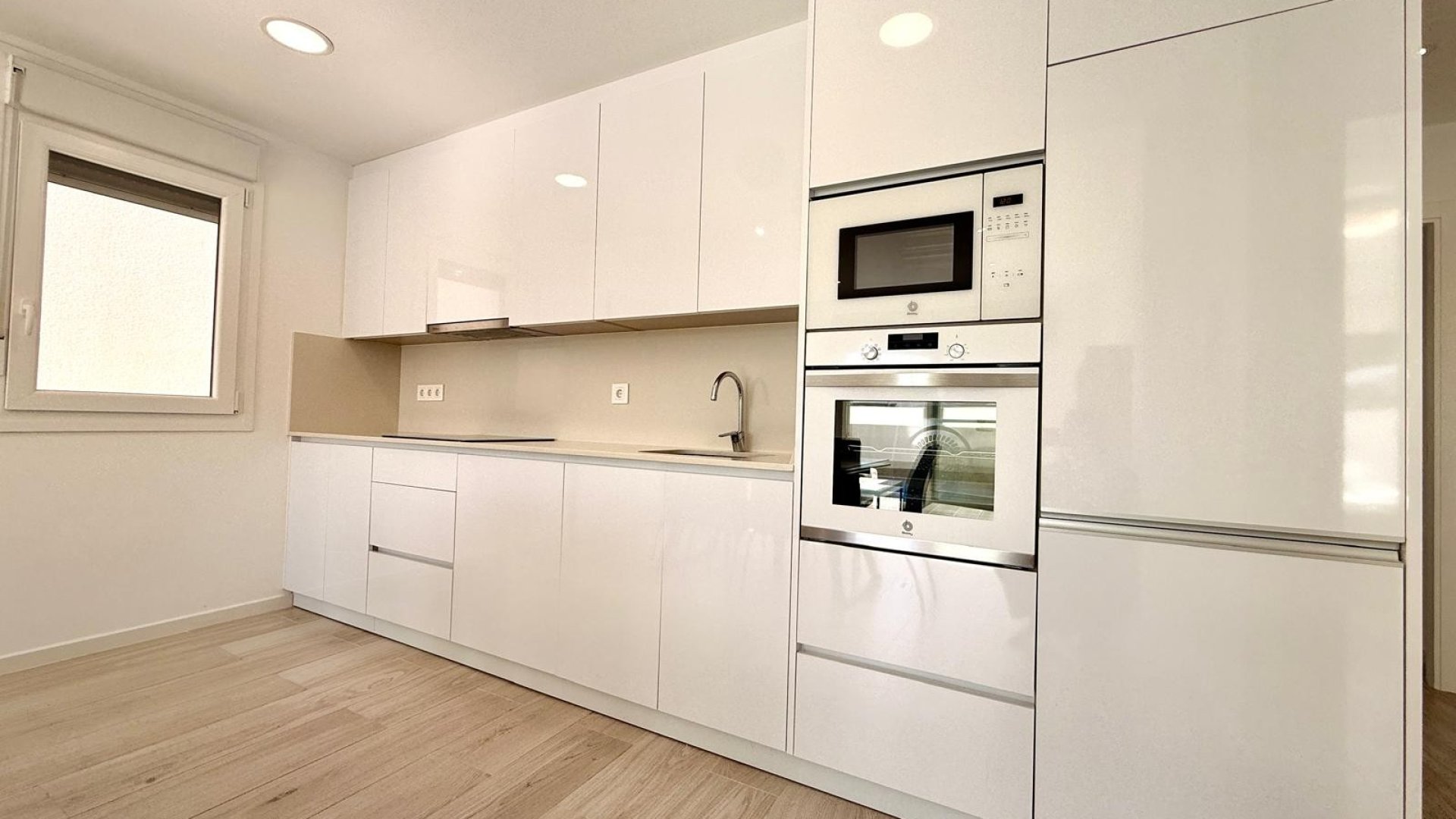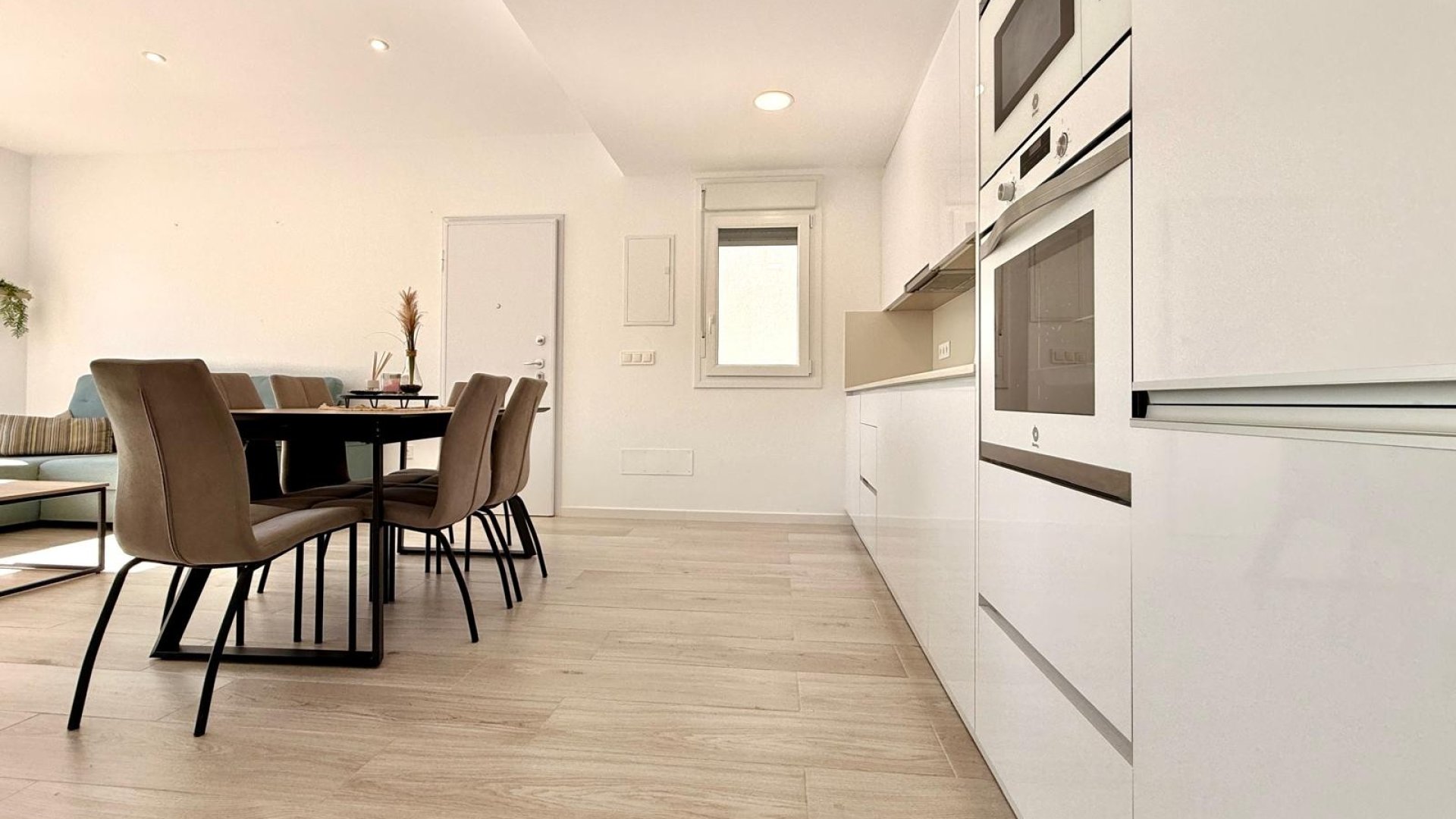 Le cœur de la maison est un spacieux salon-salle à manger baigné de lumière, relié à une cuisine moderne ouverte et entièrement équipée, créant un espace idéal pour la vie quotidienne et pour recevoir. Depuis le salon, vous profitez d’une agréable vue sur la piscine.