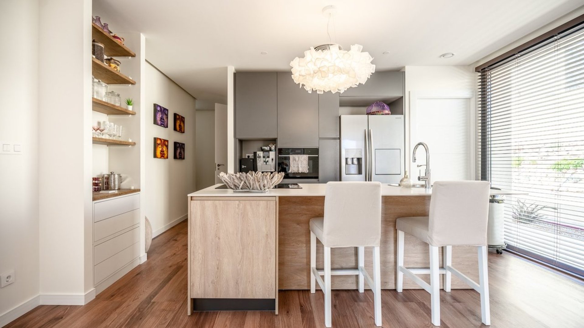 Découvrez la Spirit Villa à Las Vistas – Altaona Golf and Country Village VILLA CLÉ EN MAIN, récemment achevée. Bienvenue dans la Spirit Villa, une maison de luxe comprenant 2 chambres et 2,5 salles de bain, située dans la communauté exclusive Las Vistas, au sein de Altaona Golf and Country Village. Las Vistas est un projet résidentiel innovant composé de 90 villas uniques, réparties en trois phases. Chaque villa est conçue pour s’intégrer harmonieusement à son environnement naturel, au pied de la montagne. Cette villa offre un design distinctif aussi bien à l’intérieur qu’à l’extérieur, avec une architecture moderne et innovante qui s’intègre parfaitement à l’environnement. L’intérieur spacieux a été soigneusement conçu pour offrir confort et élégance, tandis que le grand jardin privé et la piscine créent un véritable espace de détente. La villa dispose d’un grand jardin, d’un espace de stationnement et d’une piscine privée, et a été améliorée avec de nombreux extras par rapport au modèle standard, pour une valeur de plus de 40 000 €. Par exemple : • Cuisine italienne améliorée avec électroménagers haut de gamme : réfrigérateur américain, lave-vaisselle Whirlpool, micro-ondes combiné Whirlpool, hotte aspirante, plaque à induction Bora, cave à vin Klarstein (32 bouteilles) et Quooker avec chaudière de 7 litres, machine professionnelle Jura café/cappuccino • Placard intégré supplémentaire à l’entrée • Salon et chambre principale agrandis • Salon agrandi de 50 cm • Douches effet pluie Grohe encastrées avec boutons poussoirs dans les deux salles de bain • Robinet encastré dans la salle de bain principale et lavabo amélioré • Salles de bain et toilettes invités partiellement en mosaïque de verre • Douches réalisées en Mortex (au lieu de carrelage) • Fenêtre de toit en verre ouvrante dans la salle de bain principale • Les 3 toilettes disposent d’une fonction bidet intégrée et d’une douchette • Grande fenêtre supplémentaire dans la chambre principale • Patio extérieur de la chambre principale intégré à la chambre avec cloison, créant un espace coiffeuse/dressing • Portes coulissantes dans chaque chambre avec accès direct au jardin et à la piscine • Système Airzone : climatisation par zones (chaque pièce réglable individuellement) • Chauffage au sol dans le salon, la cuisine et les salles de bain • Volets intérieurs en bambou, légers et fins, dans toutes les pièces • Moustiquaires dans toutes les pièces • Variateurs de lumière supplémentaires dans toutes les pièces • Sol stratifié étanche sans seuil dans toute la villa • Système central de filtration d’eau 3M – eau potable dans toute la maison • Éclairage du jardin et du carport • Jardin plus grand que les autres villas • Terrasse supplémentaire de 100 m² en composite et 75 m² de gazon artificiel • 35 m de clôture naturelle en brise-vue pour une ambiance chaleureuse • Piscine agrandie de 3x6 m à 4x7 m avec accès latéral et marches • Abri de jardin sans entretien (2,15 x 2,15 m) • Jacuzzi gonflable Intex rond pour 4 personnes • 2 caméras de sécurité avec application mobile Si vous recherchez une maison qui combine un design moderne de pointe avec un cadre naturel, cette Spirit Villa à Las Vistas est le choix idéal.